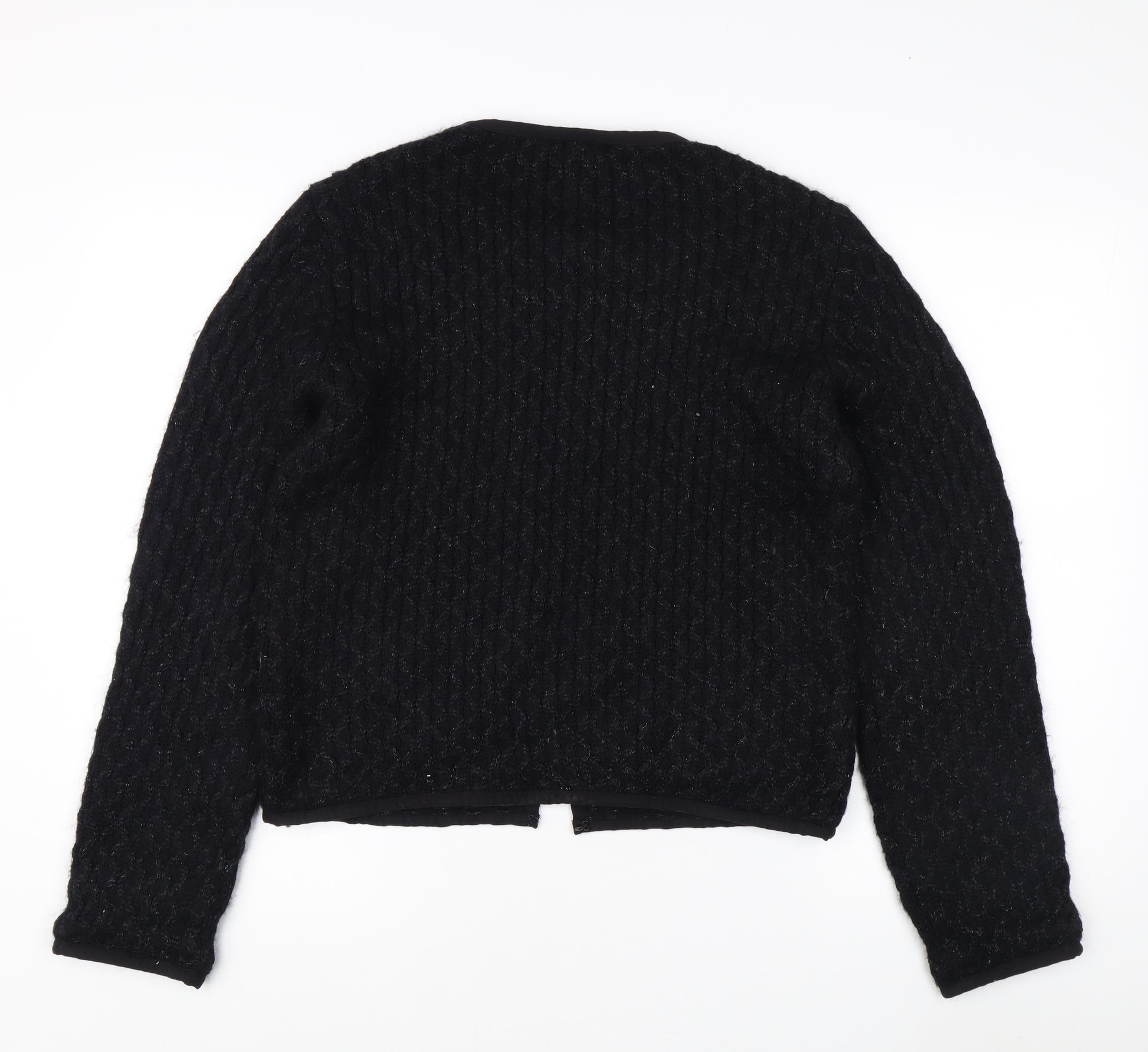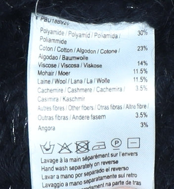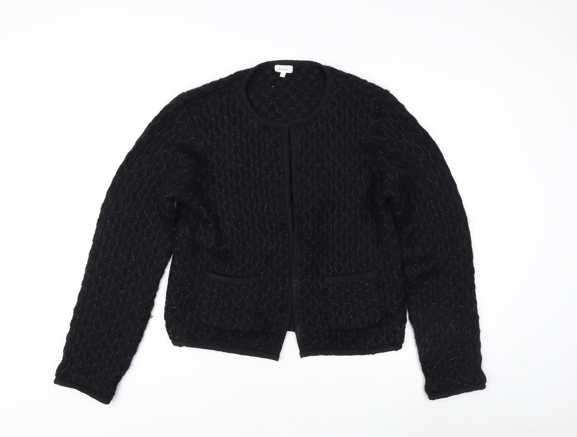 Upgrade your wardrobe with this classic Pablo Women's Black Cardigan, designed in a Medium size for a perfect fit. This stylish cable-knit cardigan showcases a rich black hue that complements any outfit. Its round neck design adds a modern touch, while the long sleeves ensure warmth and comfort in cooler weather. Crafted from a luxurious blend of materials including polyamide, cotton, viscose, mohair, wool, cashmere, and angora, this cardigan promises durability with a soft and cozy feel. This versatile piece can seamlessly transition from casual to more formal occasions, making it an essential addition to your clothing collection. Please note that the cardigan is in very good condition, with no visible defects. Hand washing is recommended to maintain its pristine quality. Priced competitively, this Pablo cardigan offers exceptional value, bringing designer style to your everyday wear.