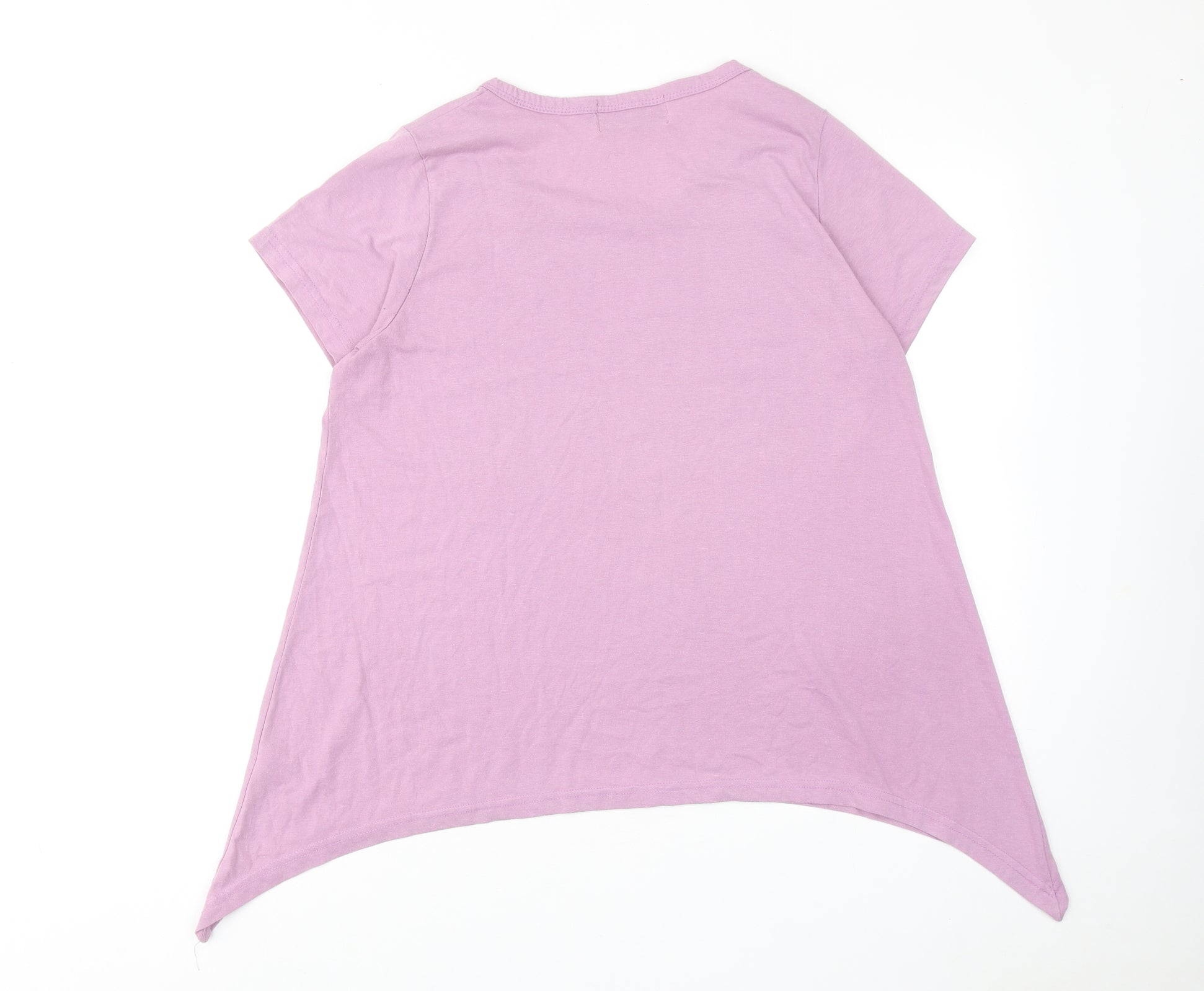 Womens Purple Polyester Basic T-Shirt Size 14 Round Neck - Asymmetric Hem