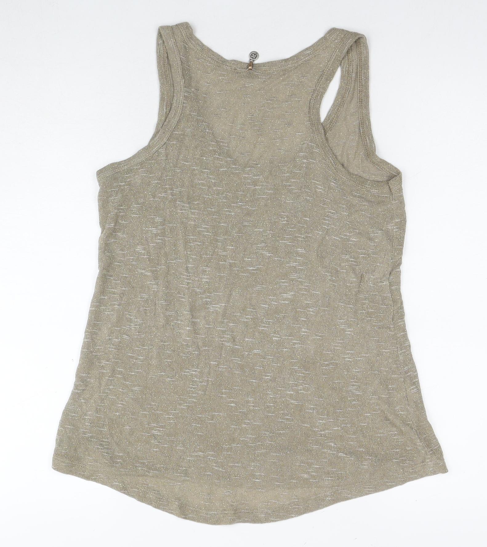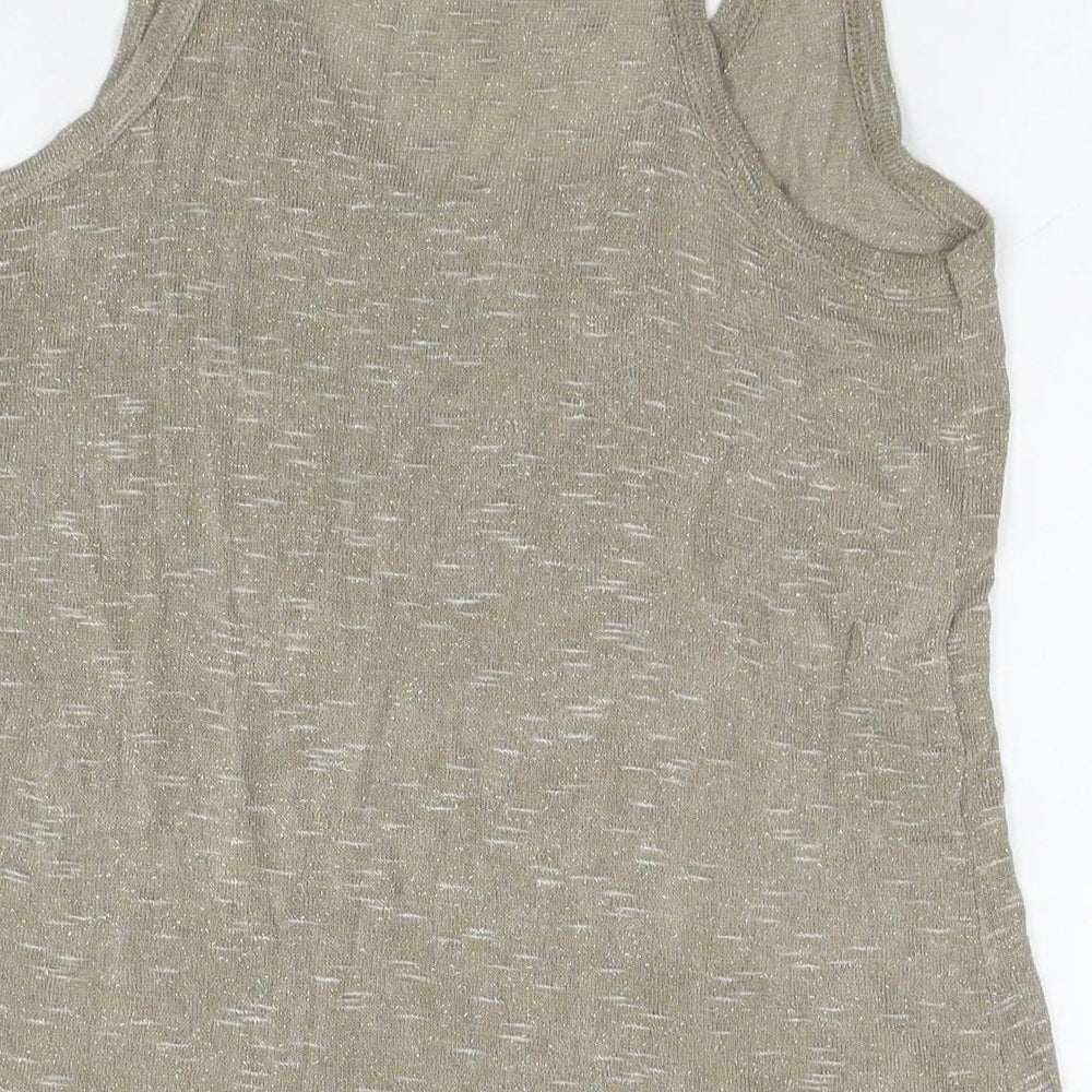 Womens Beige Viscose Basic Tank Size M Round Neck