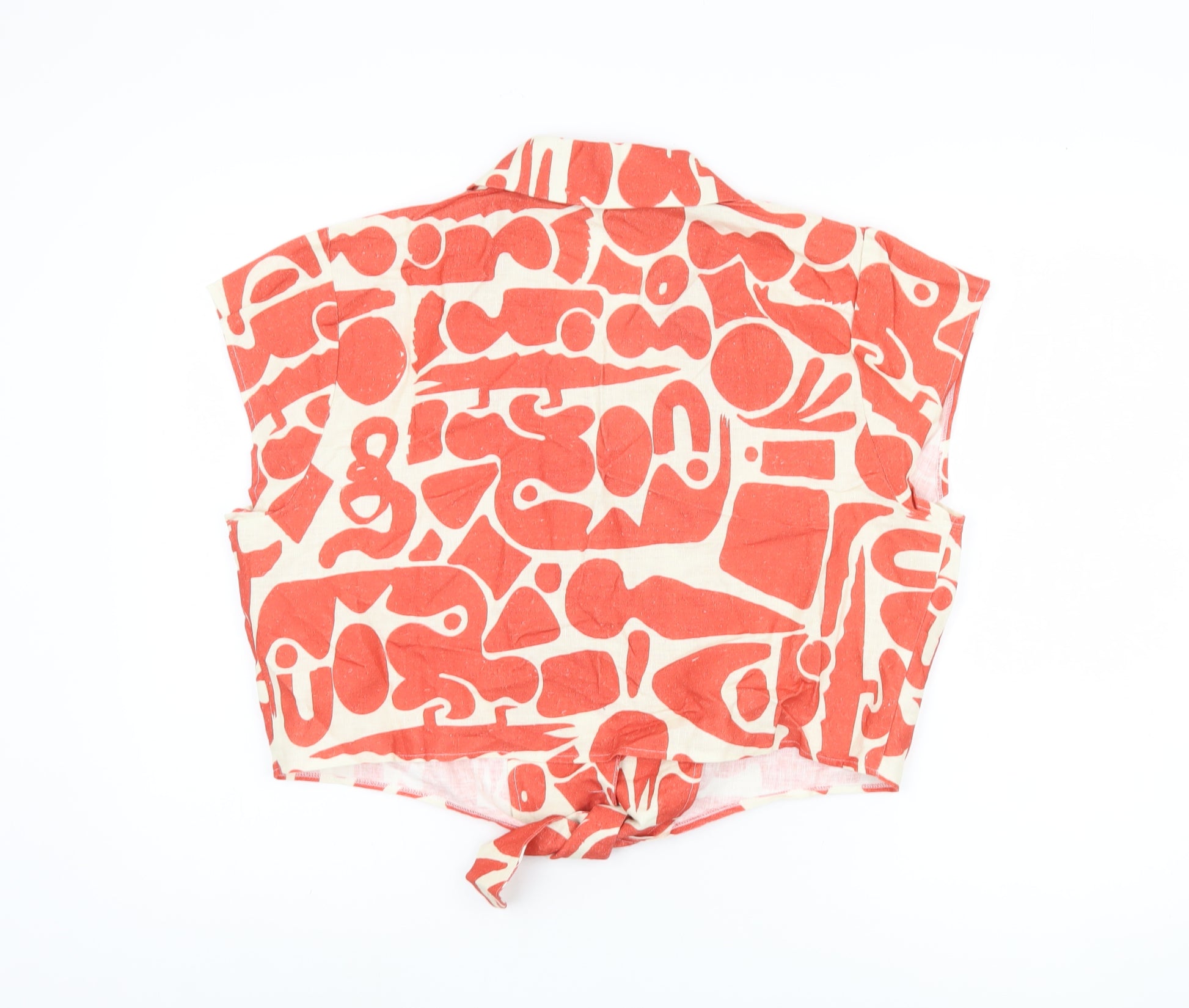 Discover effortless style with this Palava Women's Red Button-Up Shirt. Made from a luxurious blend of 50% linen and 50% cotton, this sleeveless top offers both comfort and breathability, making it perfect for warm spring and summer days. Featuring a chic collared neckline and classic button accents, this shirt embodies a casual yet sophisticated vibe that's ideal for both relaxed outings and laid-back afternoons. The vivid red hue ensures you stand out in style, while the cap sleeve design adds a contemporary twist. Designed with versatility in mind, it's a fashionable addition to any wardrobe. Pair with jeans for a laid-back look or dress it up with a skirt for a more polished ensemble. Made by Palava, renowned for unique patterns and quality craftsmanship, this shirt is a must-have for fashion-forward individuals. Easy to care for with machine-washable convenience, it's perfect for those with a busy lifestyle. In excellent condition, with no visible damage or wear, this piece looks as good as new. Add this vibrant and versatile shirt to your collection today and enjoy a perfect blend of comfort, style, and quality.