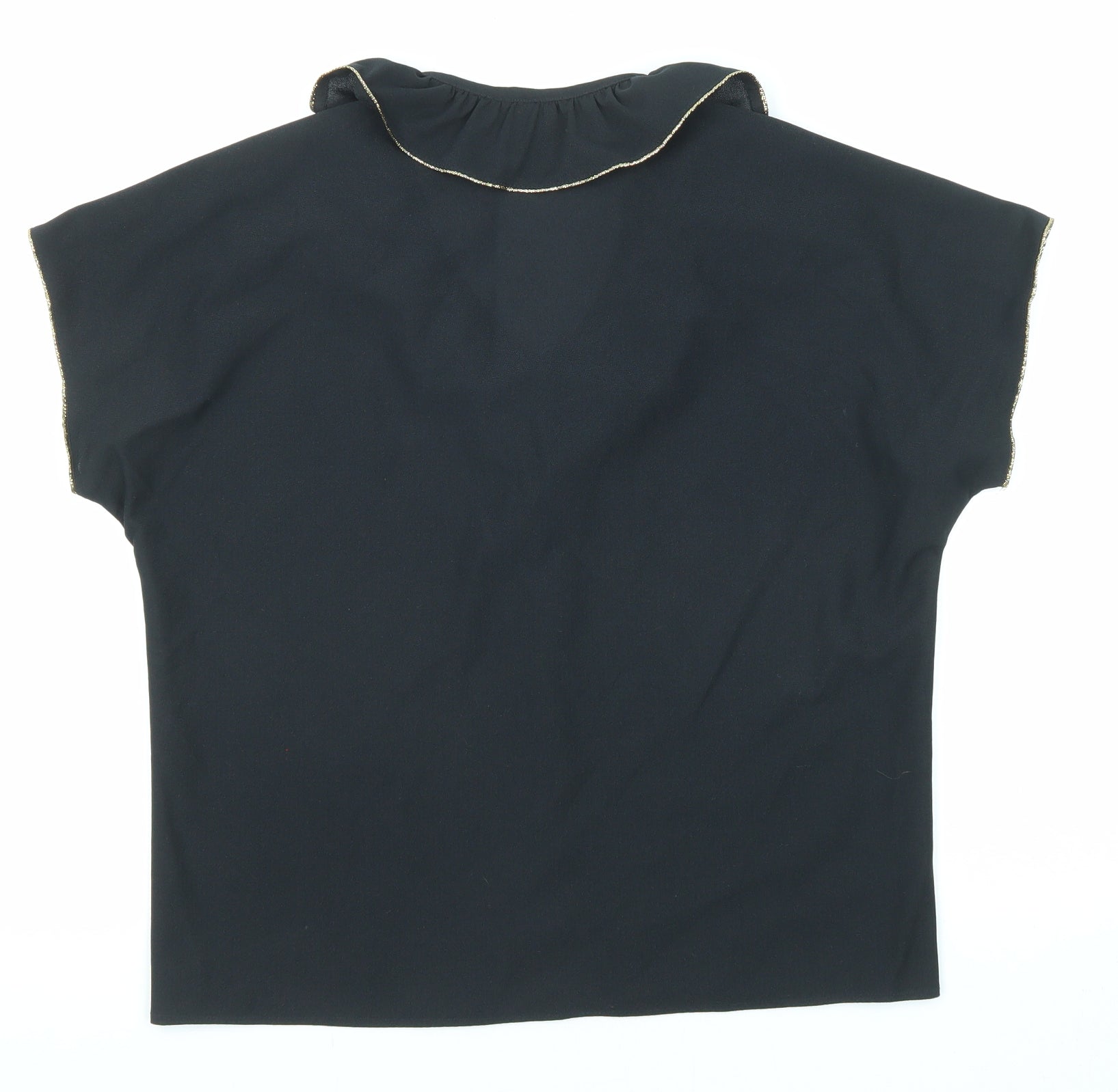 Womens Black Polyester Basic Blouse Size 16 V-Neck - Tie Neck Detail