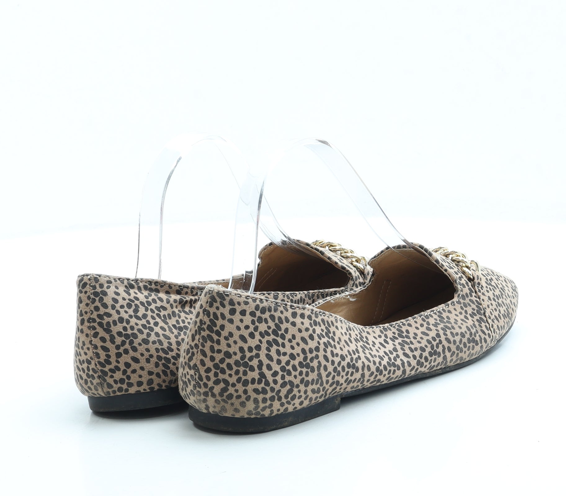 Womens Beige Animal Print Polyester Loafer Flat UK 6