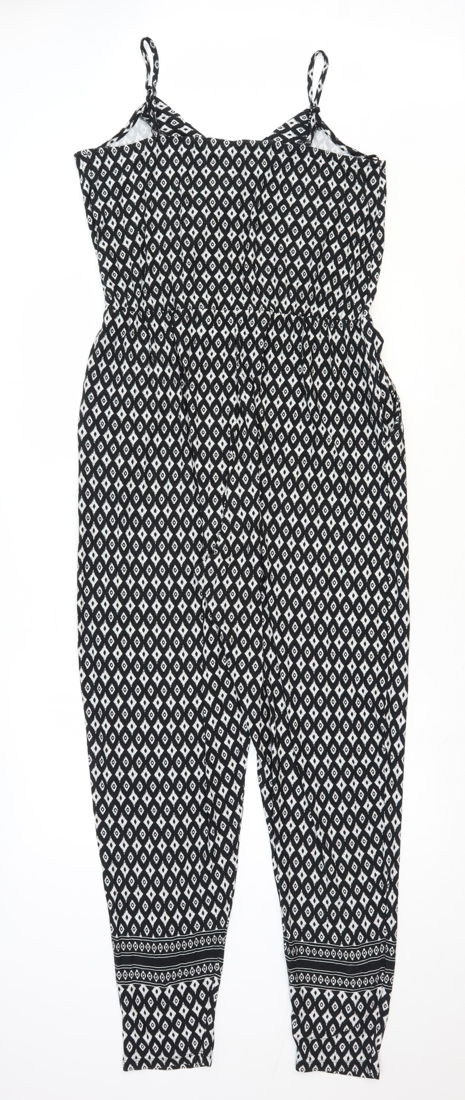 Womens Black Geometric Viscose Jumpsuit One-Piece Size 14 Pullover