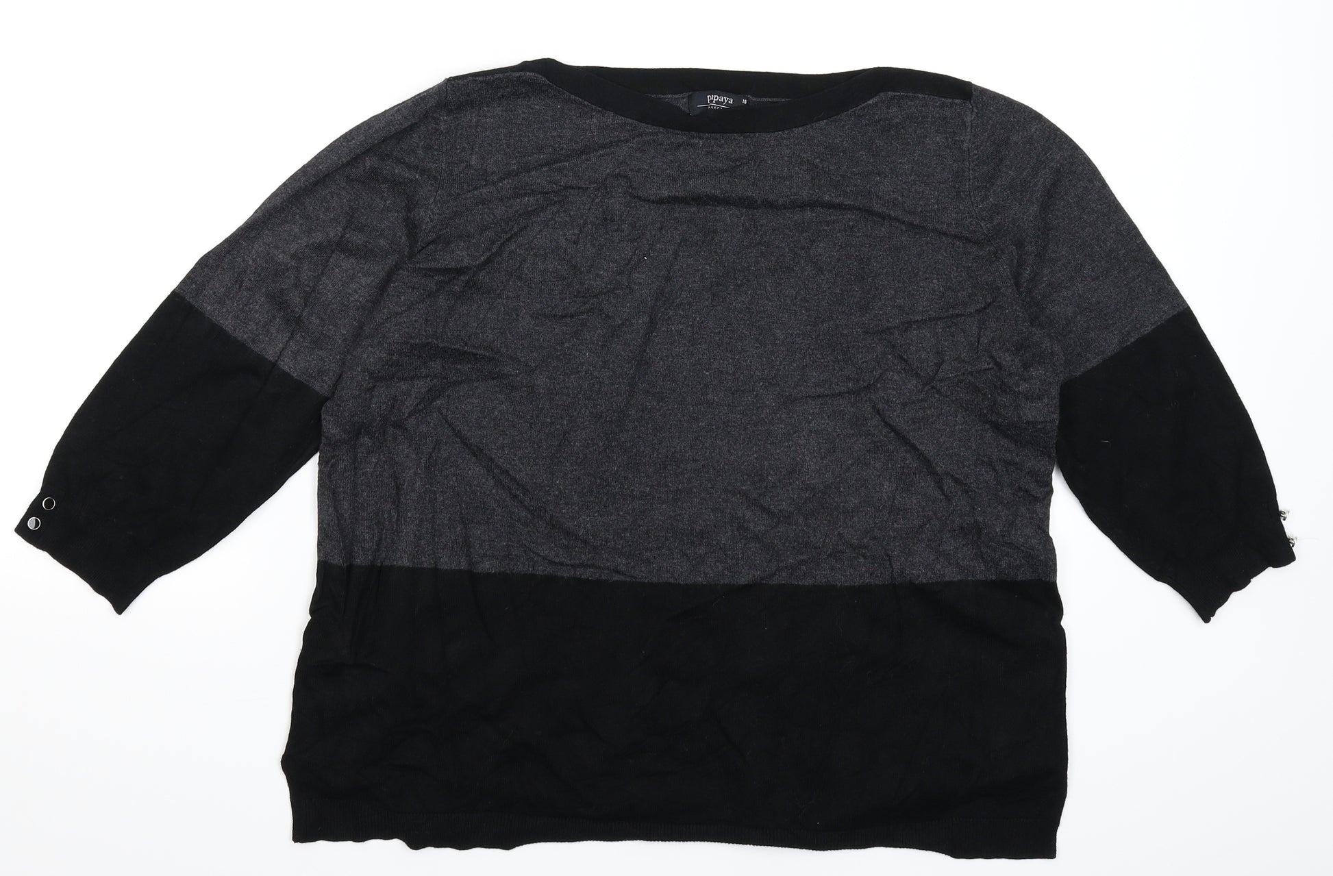 Marks and Spencer Per Una Women's Black Size 18 Scoop Neck 3/4 Sleeve Jumper