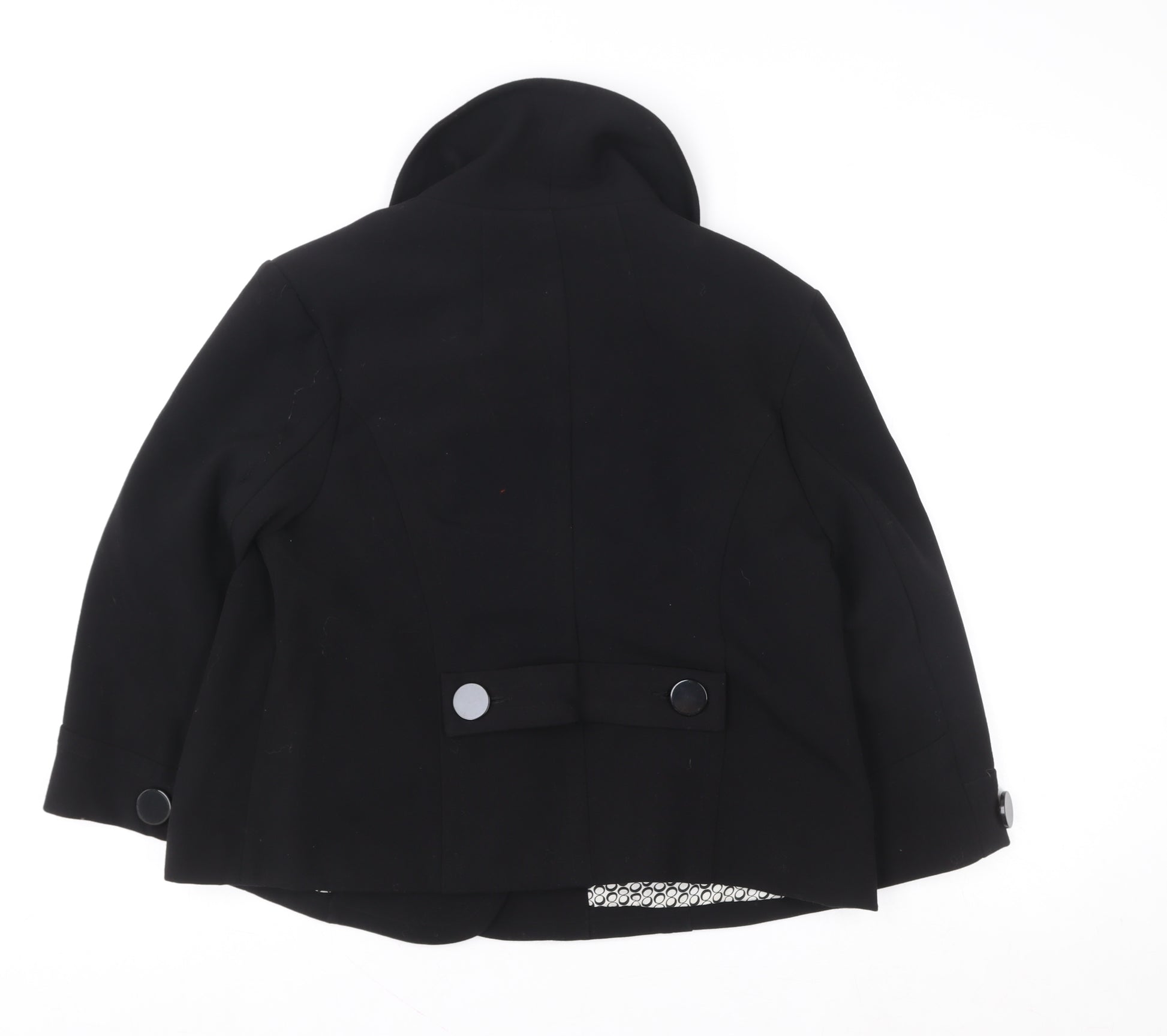 Women's Black Short Pea Coat Jacket Size 14 Lined Twill