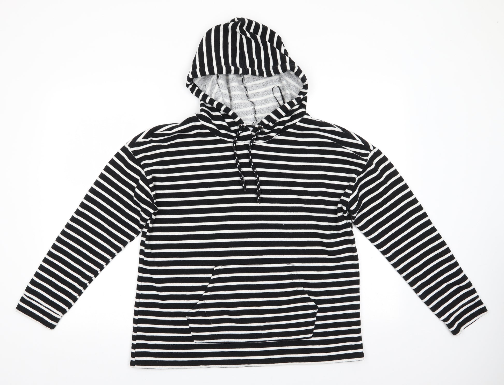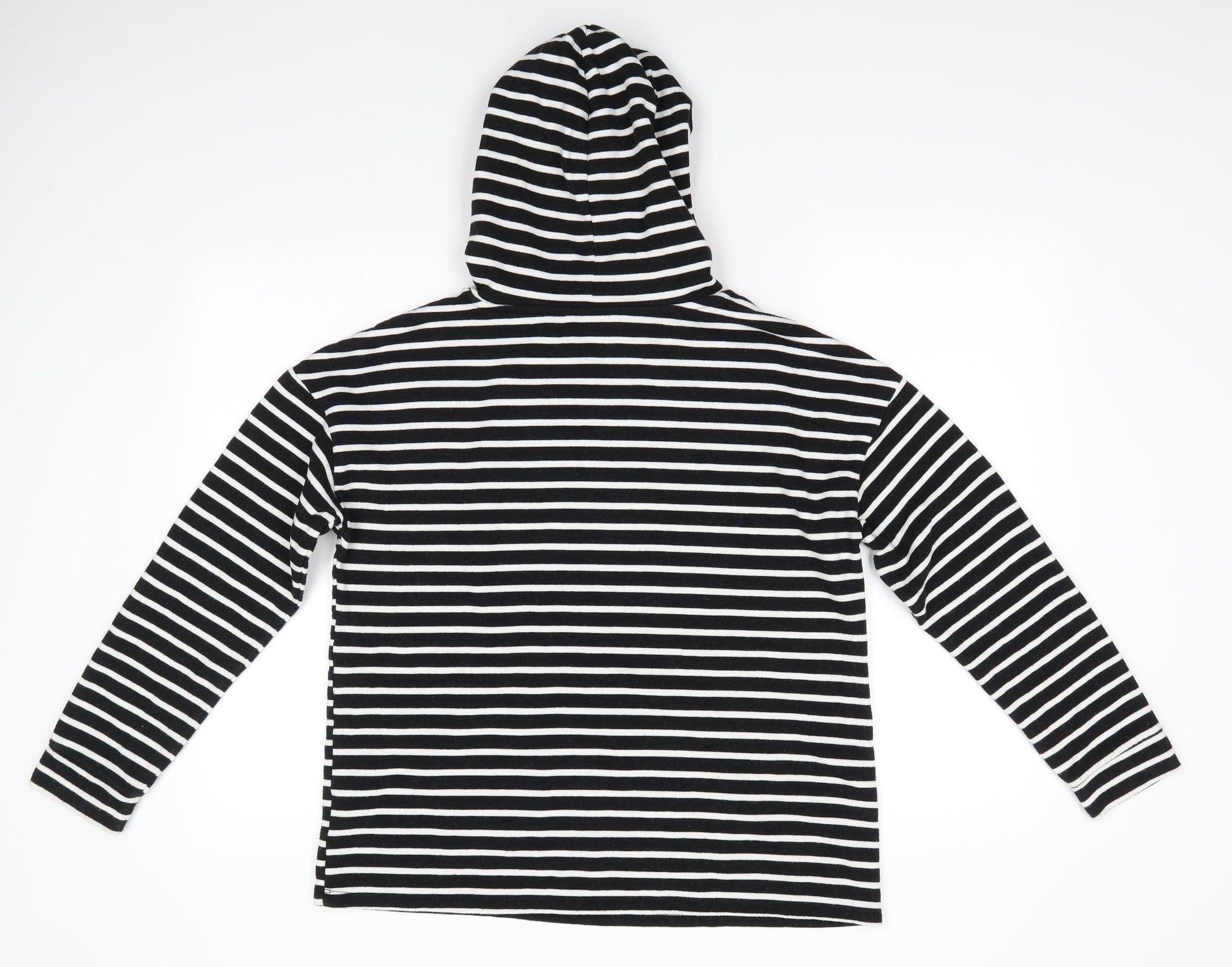 Womens Black Striped Cotton Pullover Hoodie Size 14