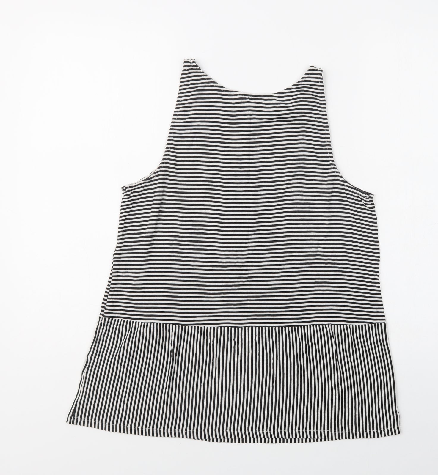 Womens Black Striped Viscose Basic Tank Size 12 Crew Neck