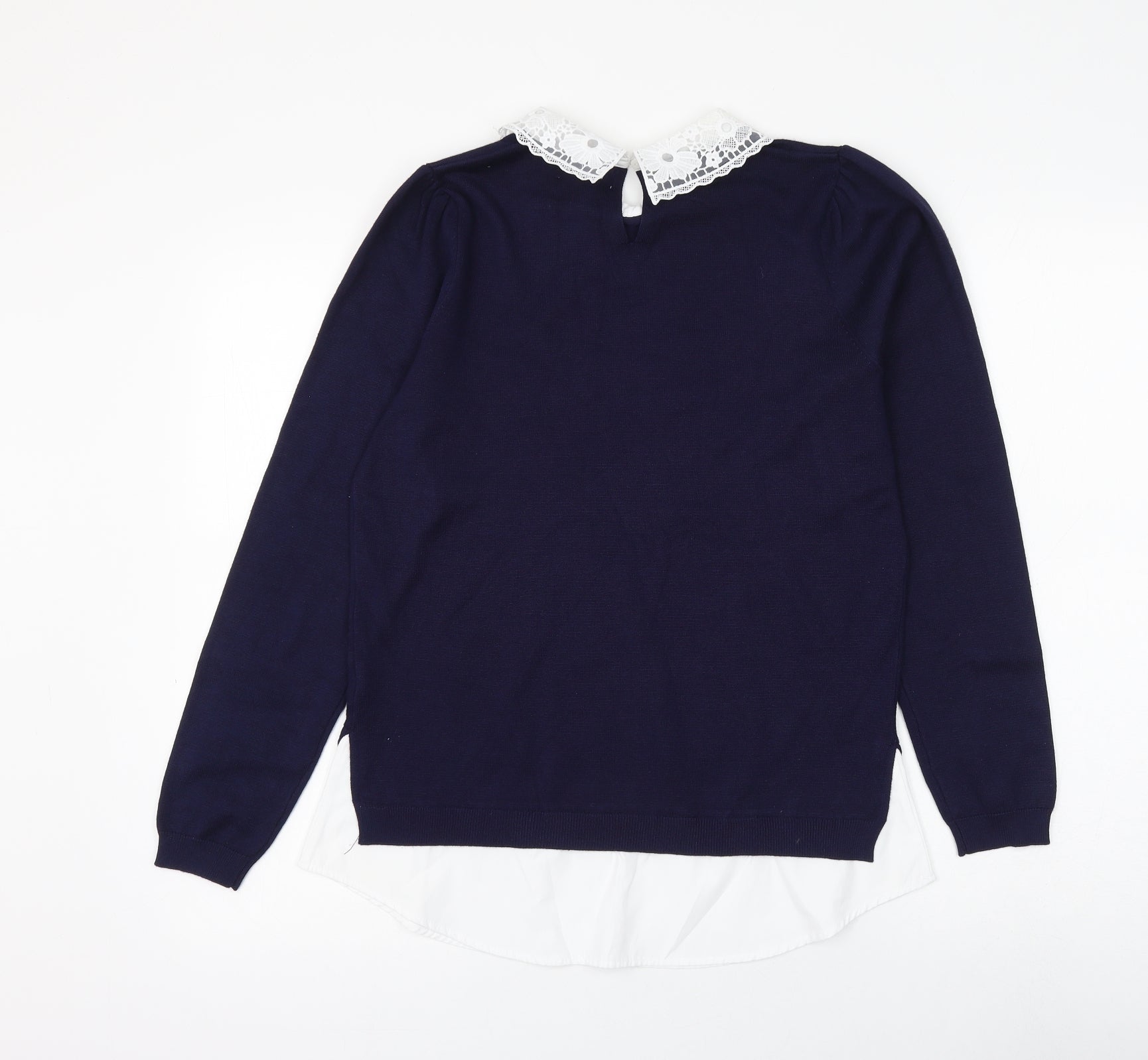 Womens Blue Collared Viscose Pullover Jumper Size 10