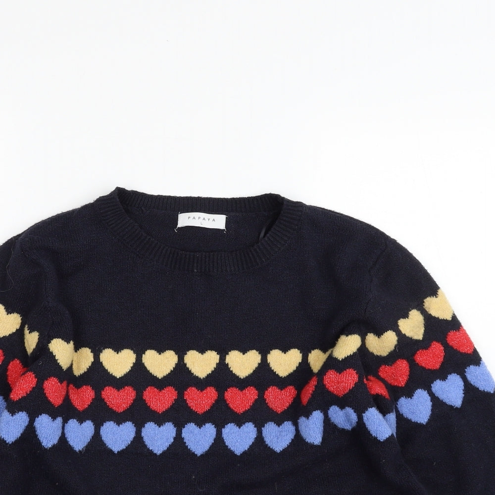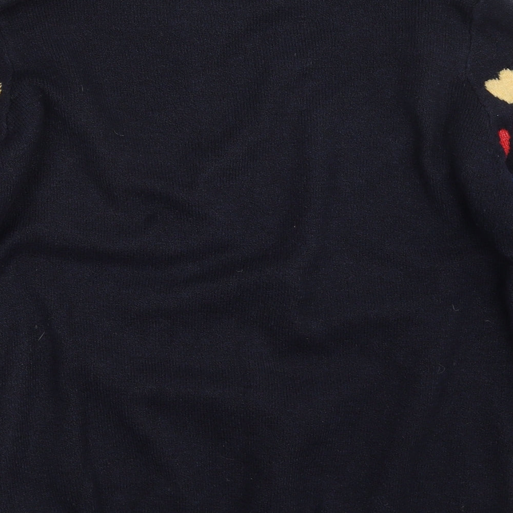 Womens Blue Crew Neck Geometric Acrylic Pullover Jumper Size L