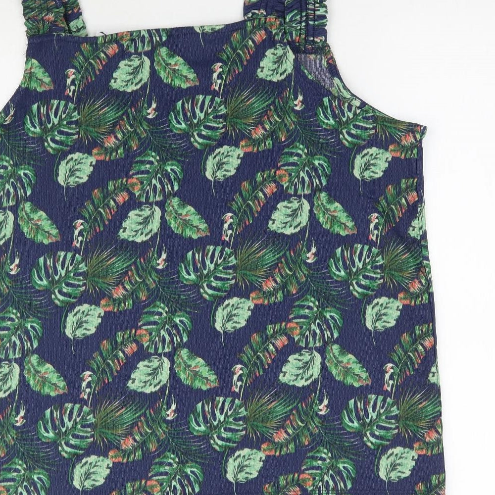 Womens Blue Floral Basic Blouse Size 14 - Leaf Print