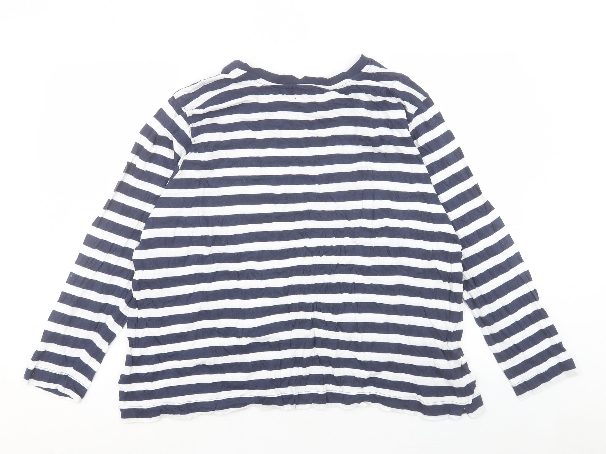 Womens Blue Striped Cotton Basic T-Shirt Size XL Crew Neck