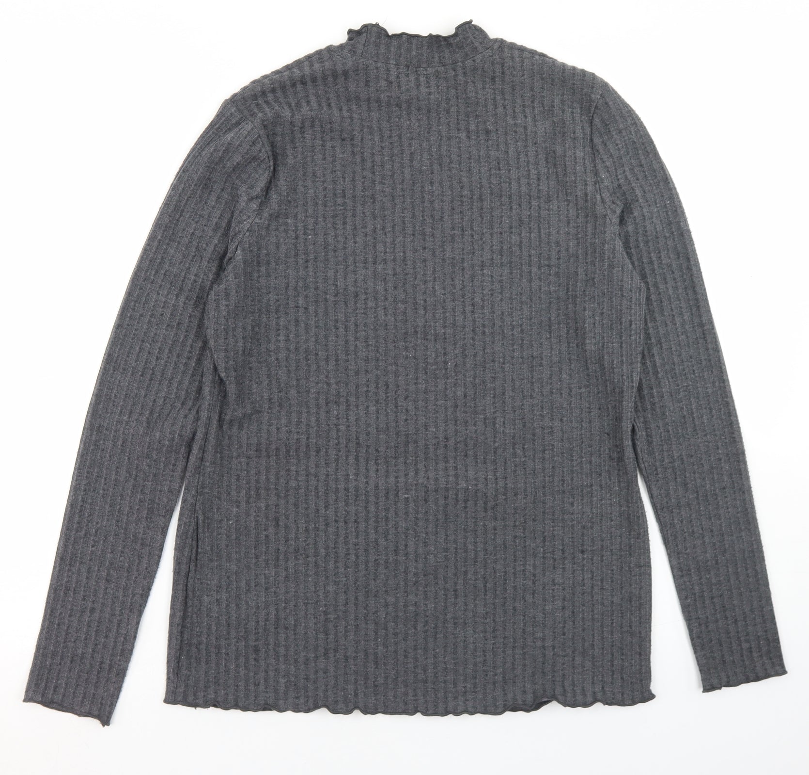 Womens Grey Polyester Basic T-Shirt Size 12 Mock Neck - Lettuce Edging