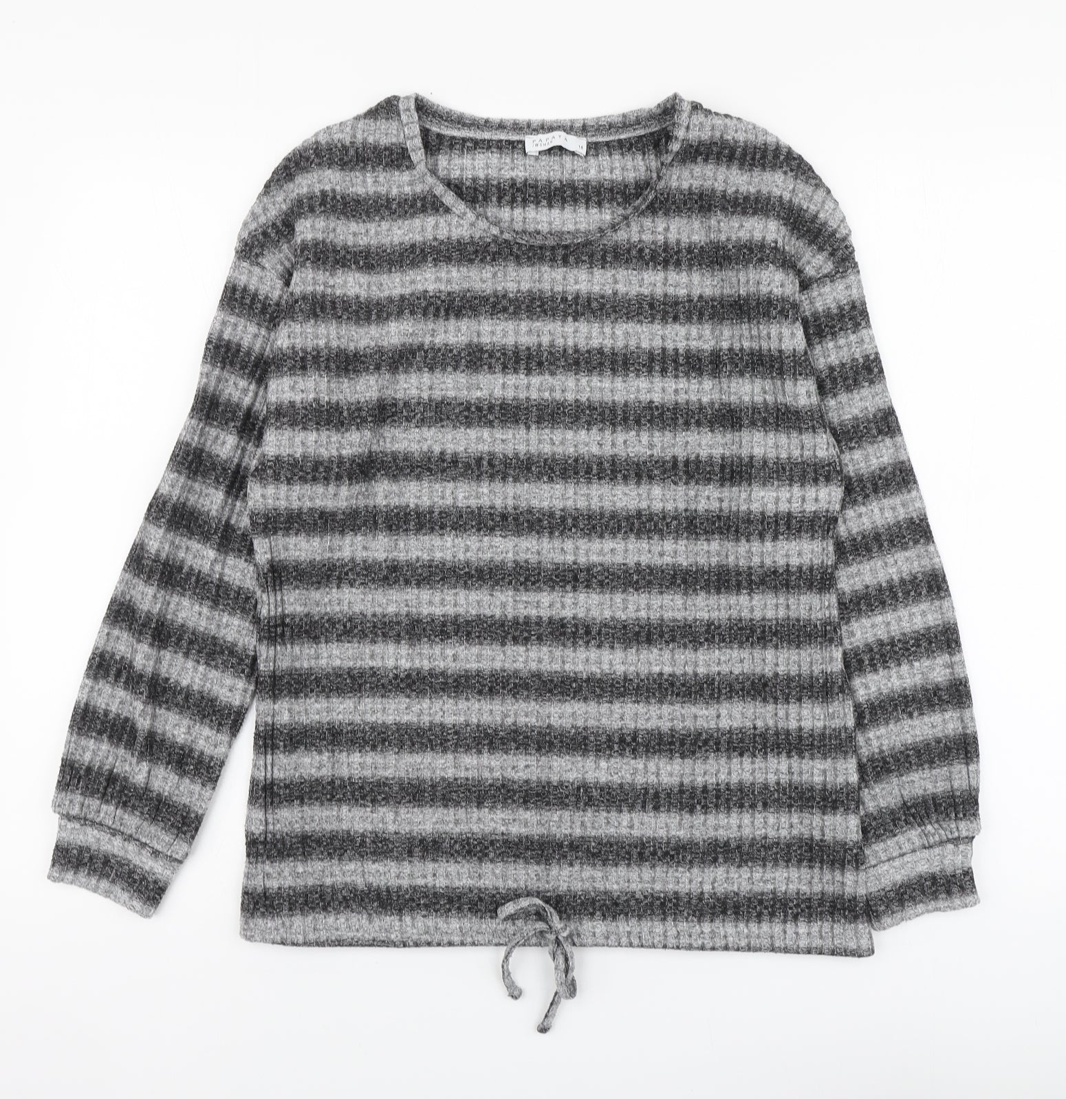 Womens Grey Round Neck Striped Polyester Henley Jumper Size 14