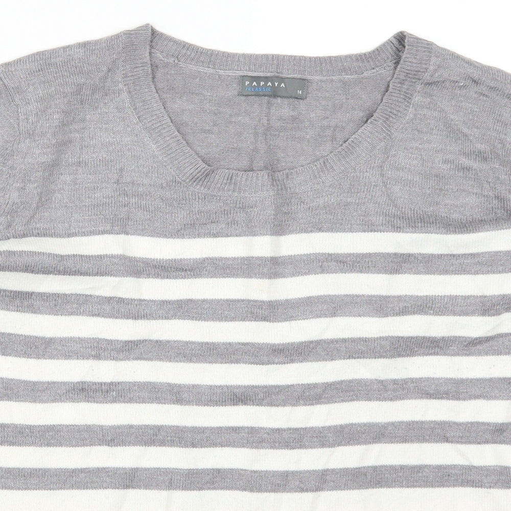 Womens Grey Striped Pullover Jumper Size 14 - Pink