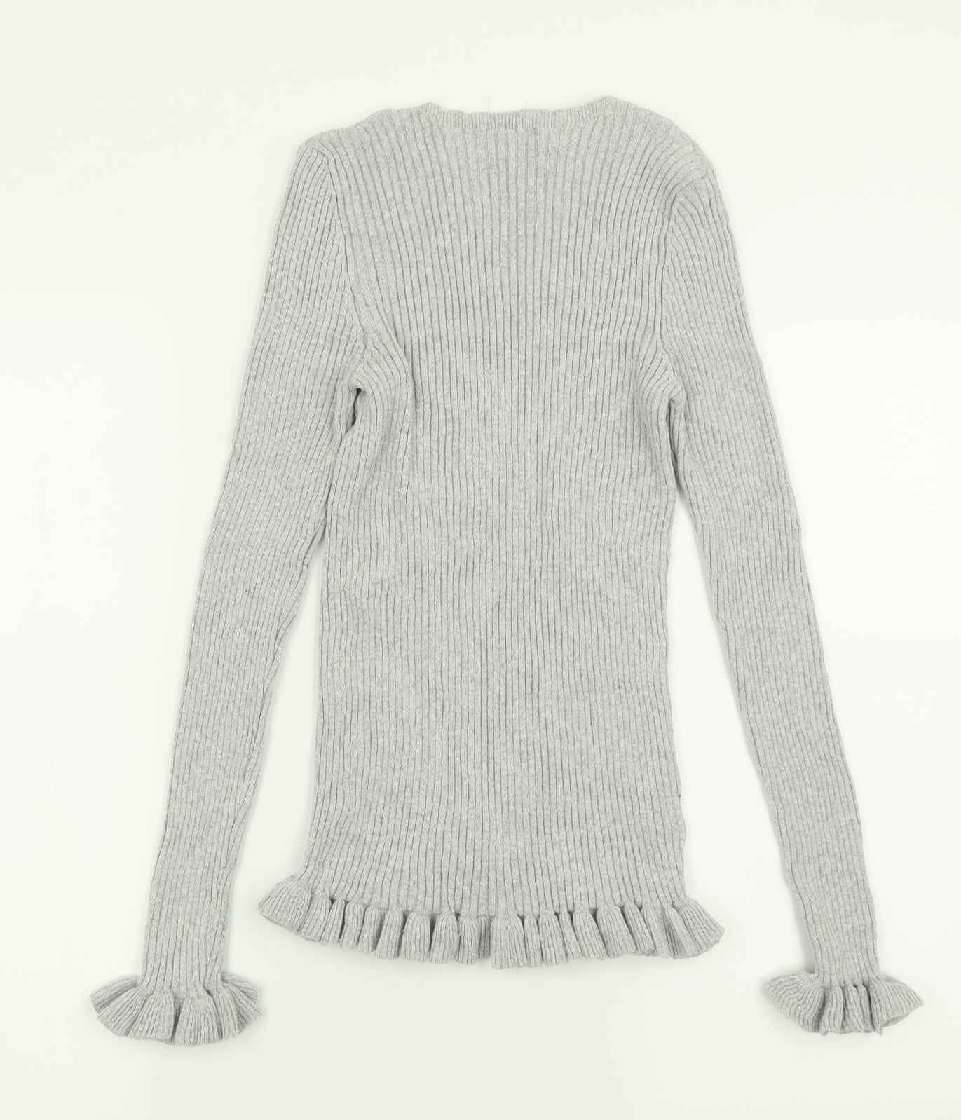 Tu Women Grey V-Neck Rib Knit Pullover Jumper Size 8