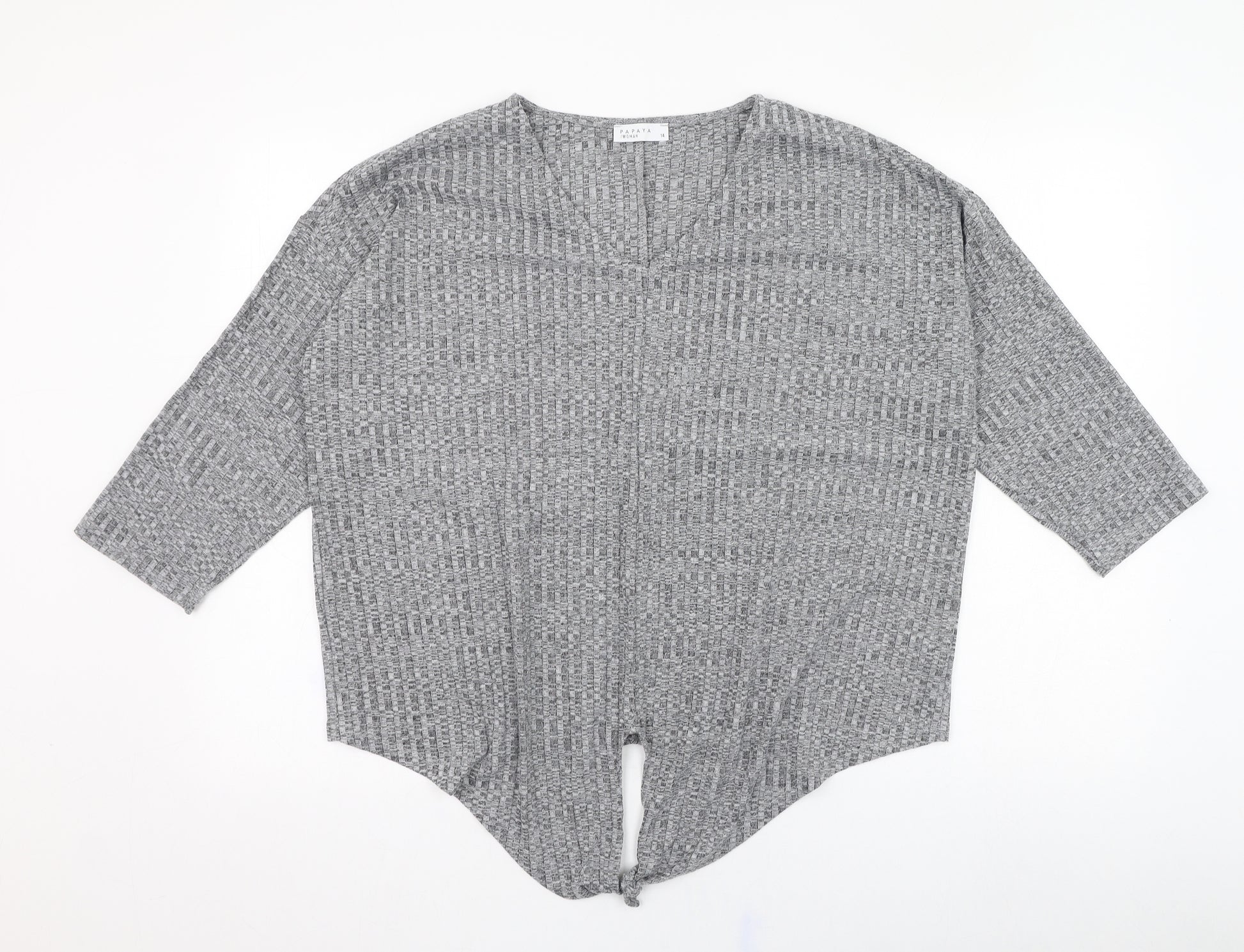 Womens Grey V-Neck Viscose Pullover Jumper Size 14