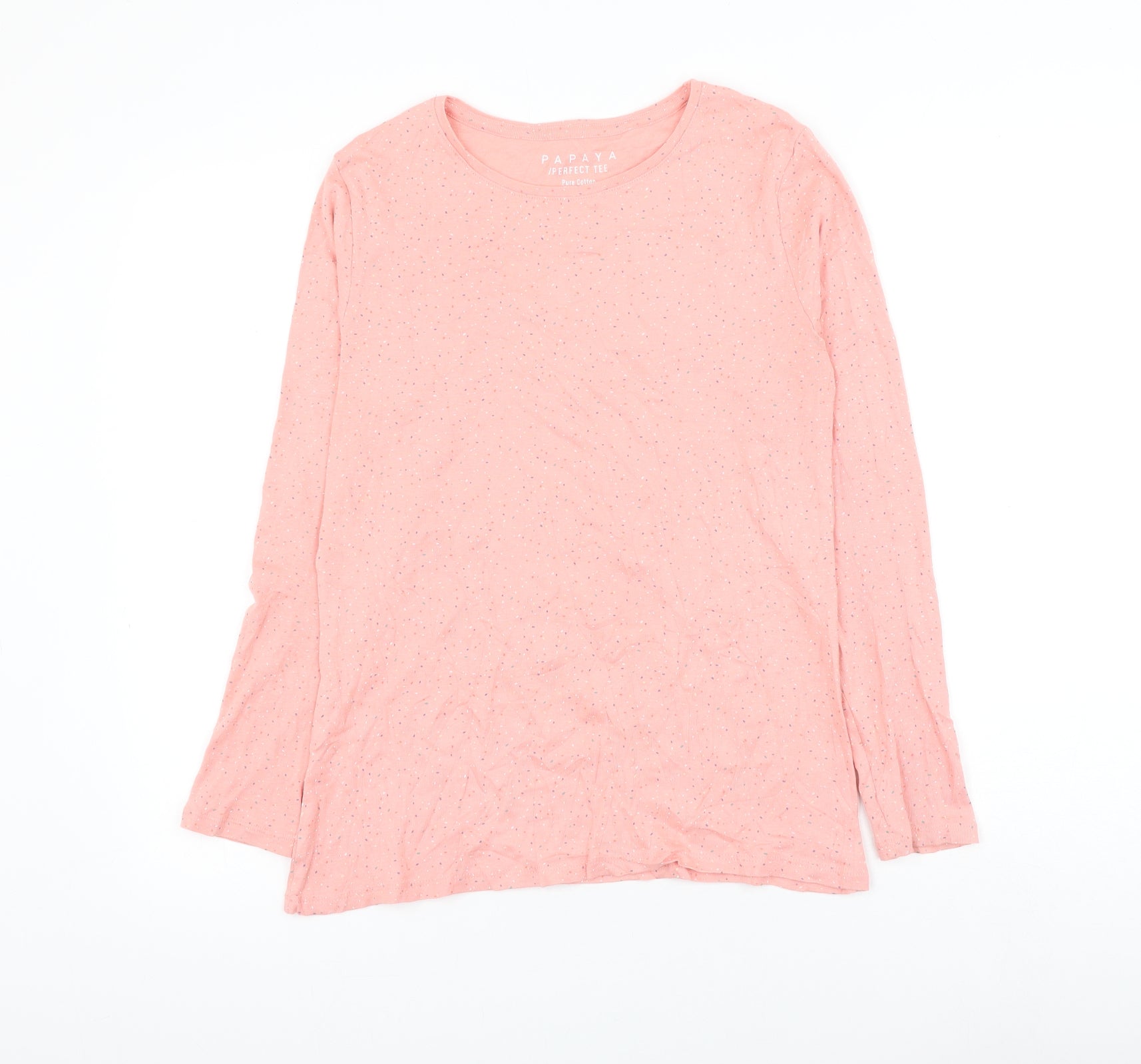 Womens Pink Geometric Cotton Basic T-Shirt Size 14 Round Neck