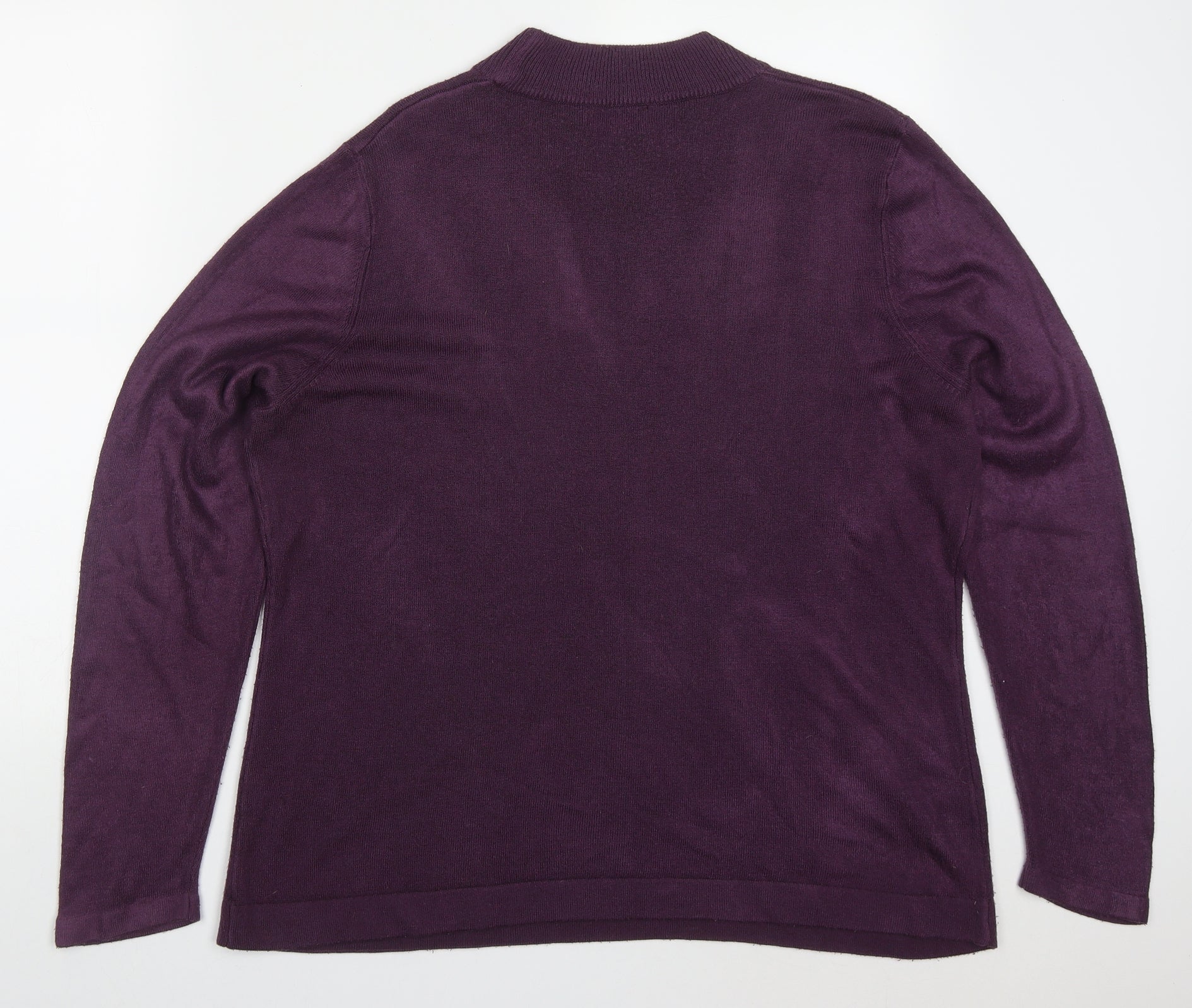 Womens Purple Round Neck Acrylic Pullover Jumper Size 20