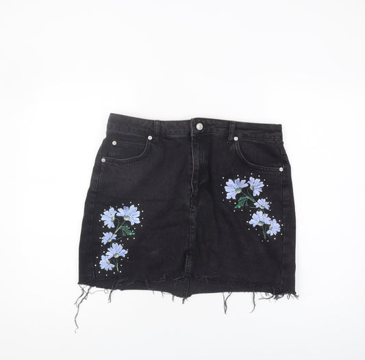 Blue Buddha Womens Black Size 14 Embroidered A-Line Skirt