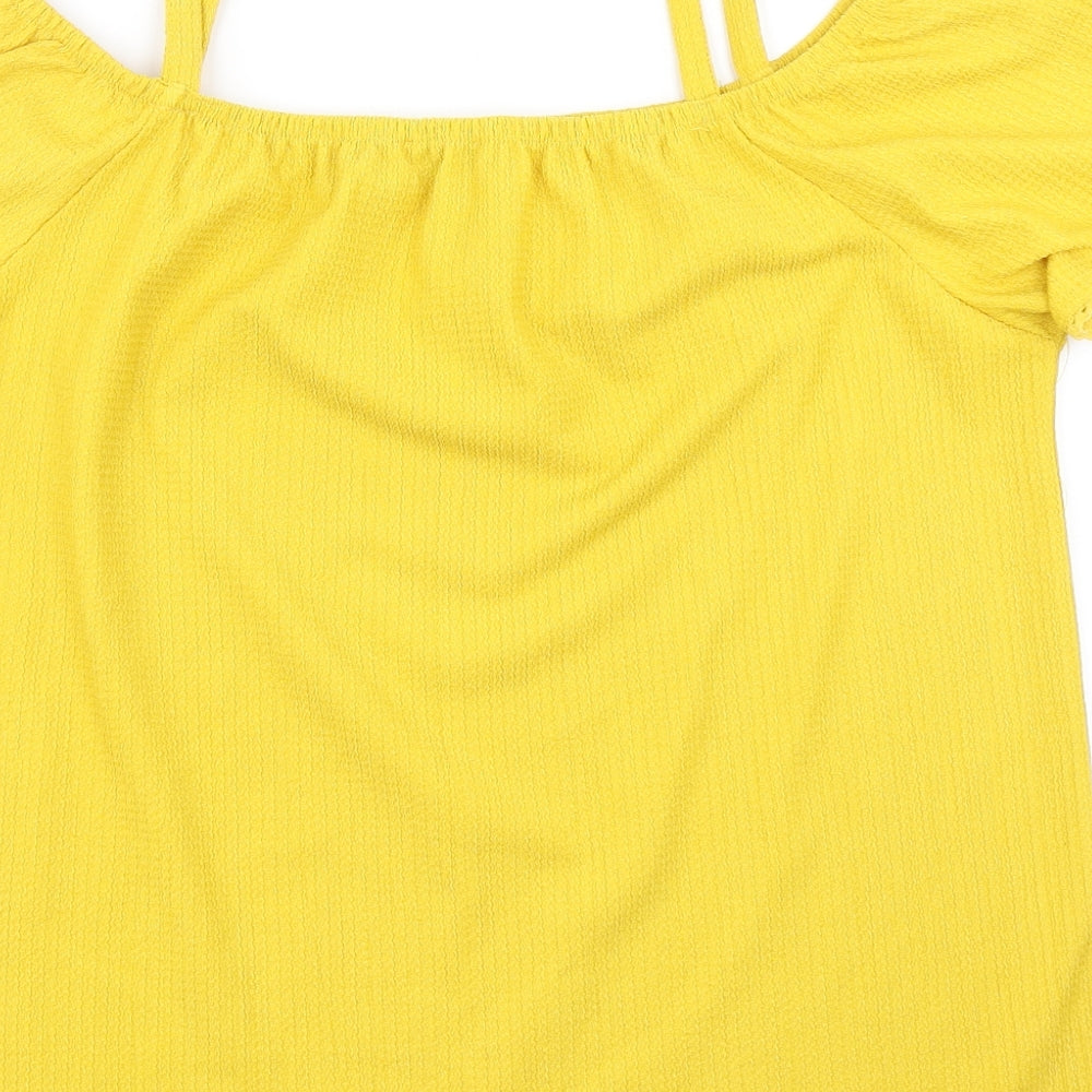 Womens Yellow Basic T-Shirt Size 14 - Cold Shoulder