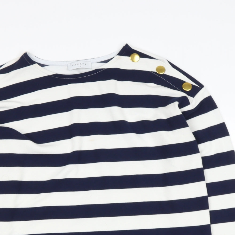 Womens Blue Round Neck Striped Polyester Pullover Jumper Size 12