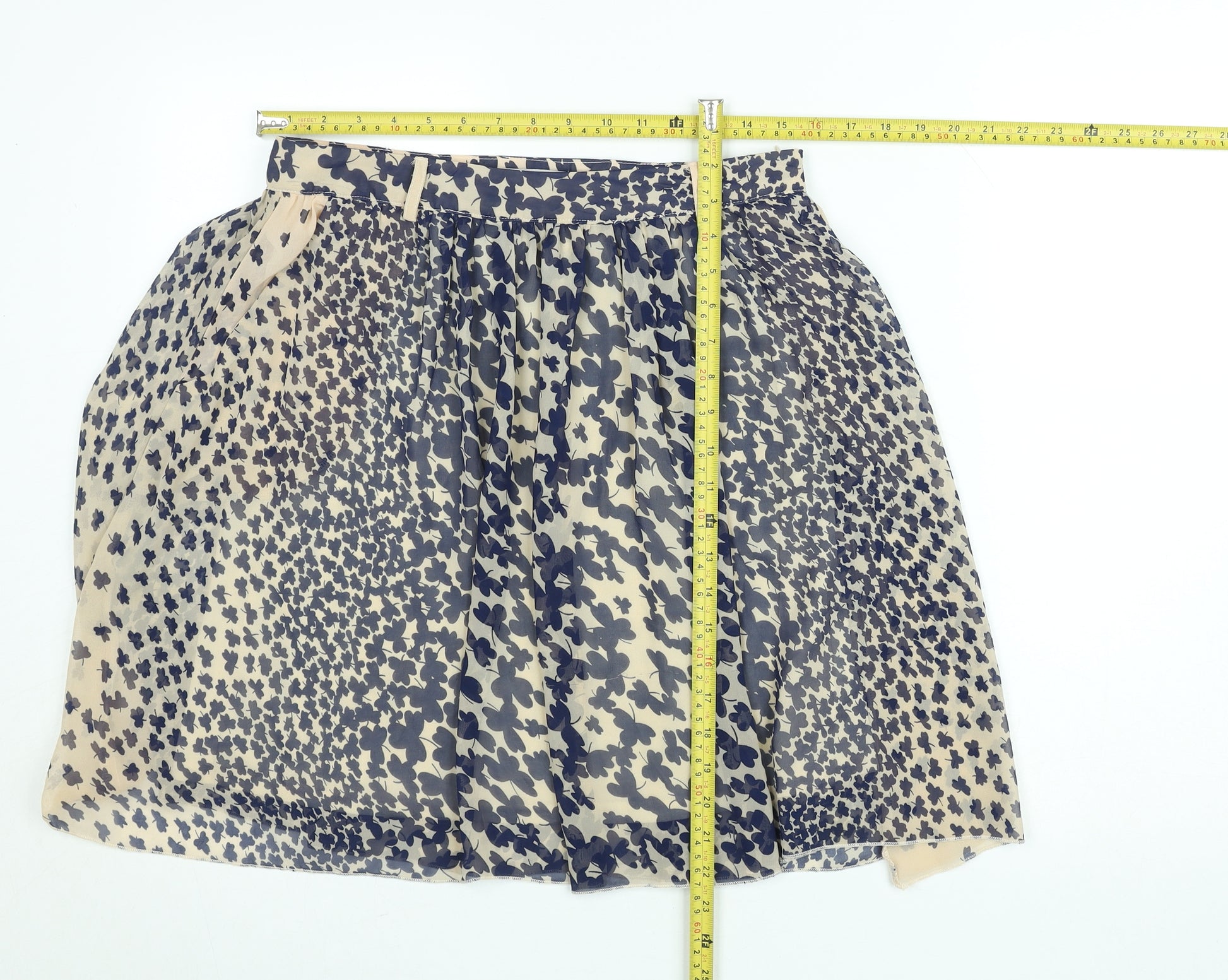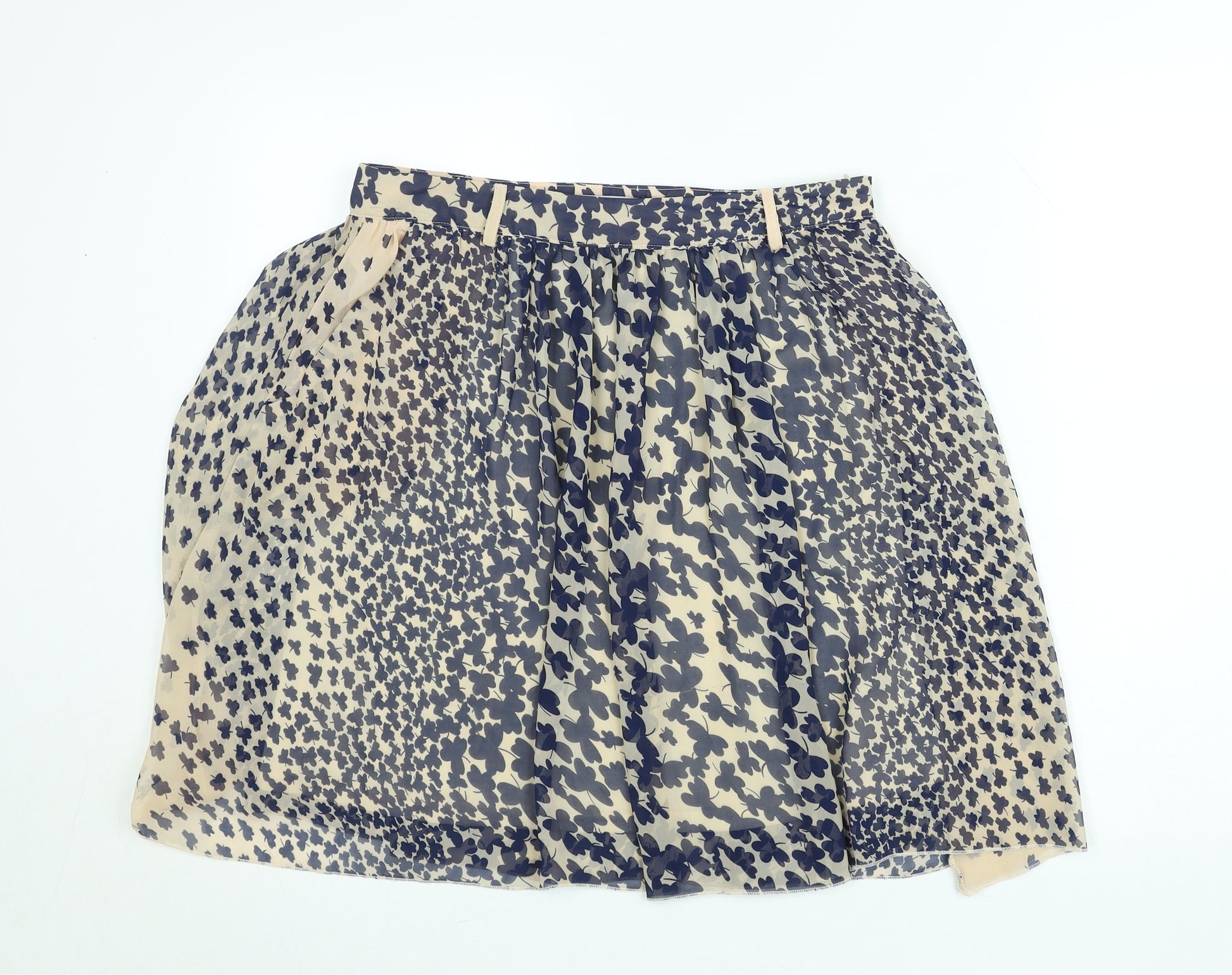 Women Cream with Blue Floral Chiffon A-Line Skirt Size 12