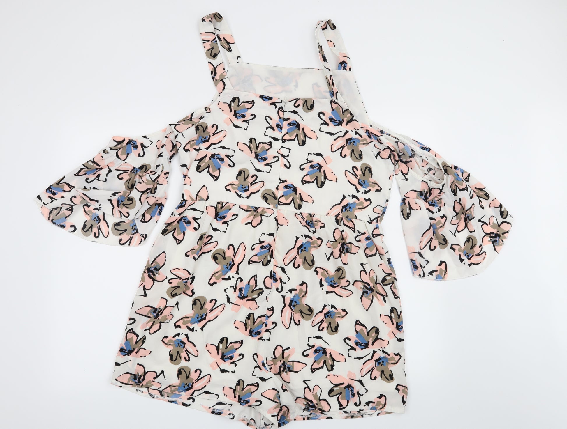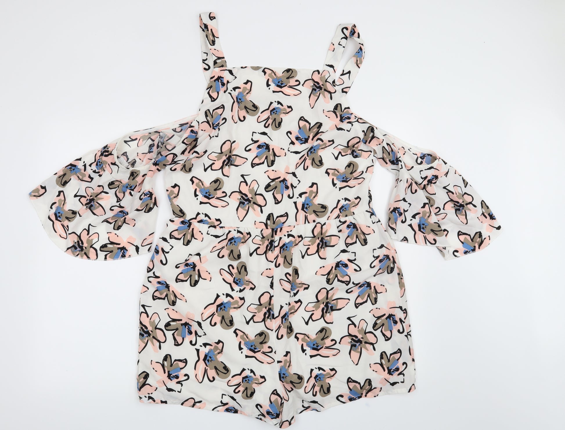 Womens White Floral Playsuit One-Piece Size 16