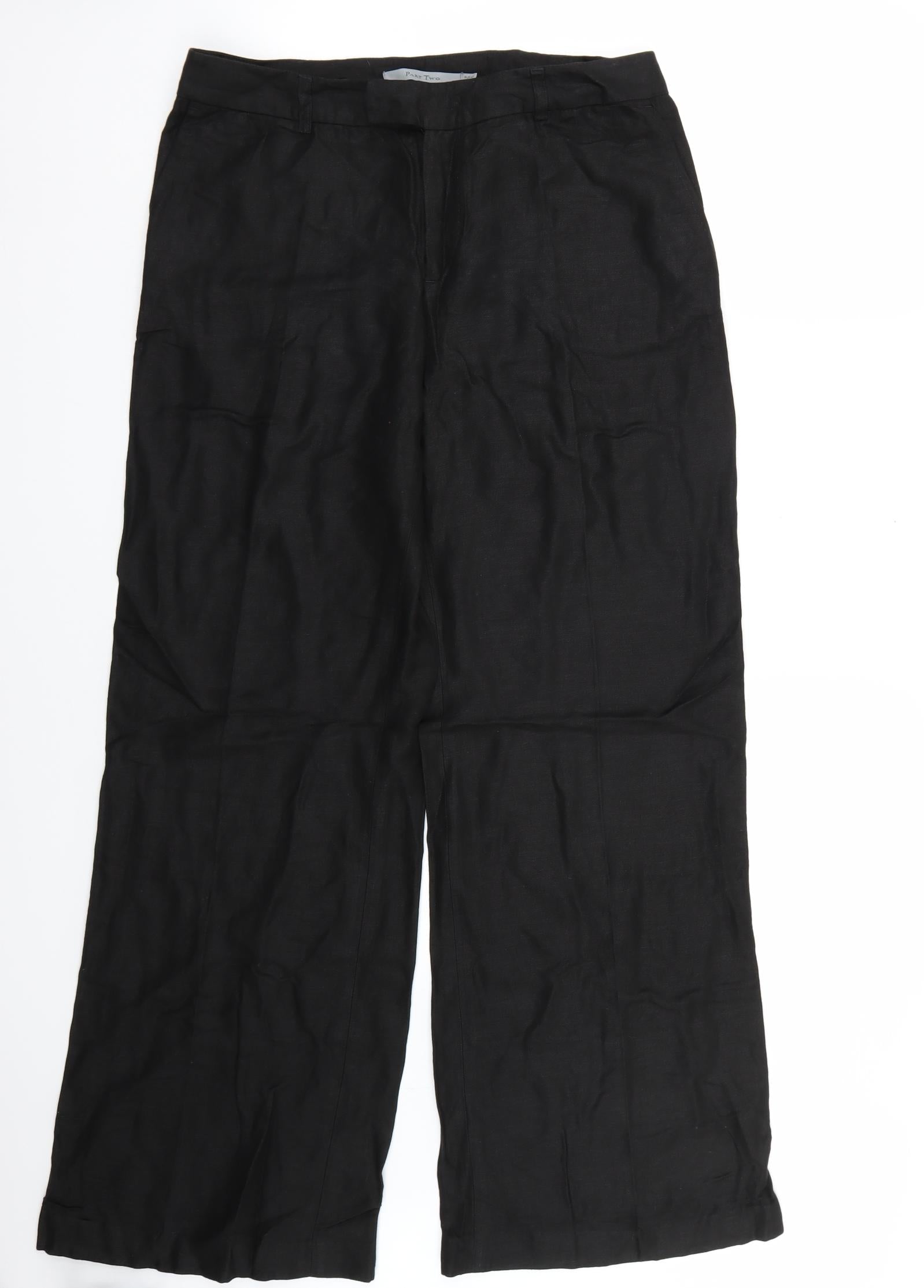 White Stuff Women's Black Size 14 Straight Leg Cotton Jersey Trousers