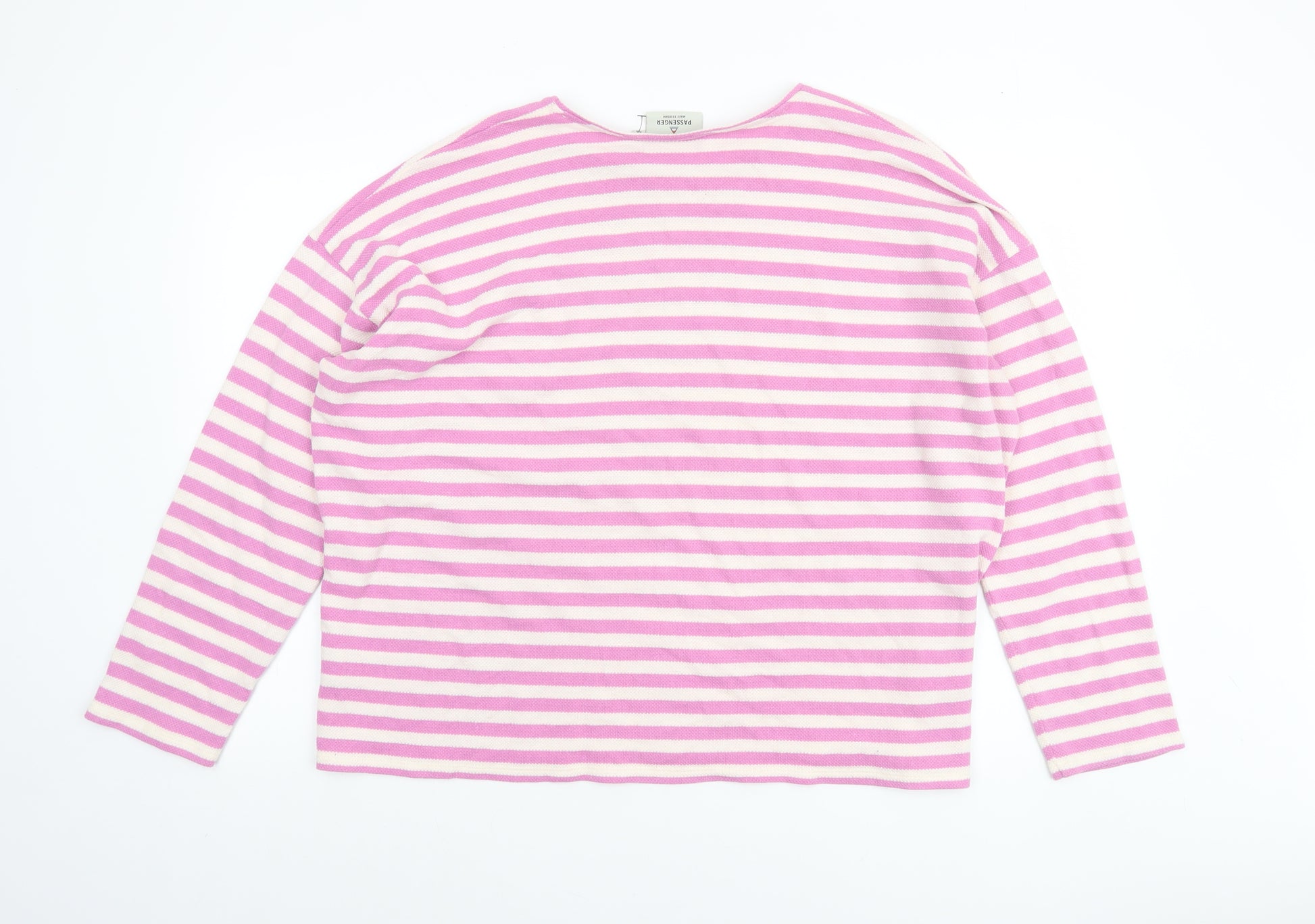 Womens Pink Striped Long Sleeve Cotton Blend Relaxed T-Shirt Size XL