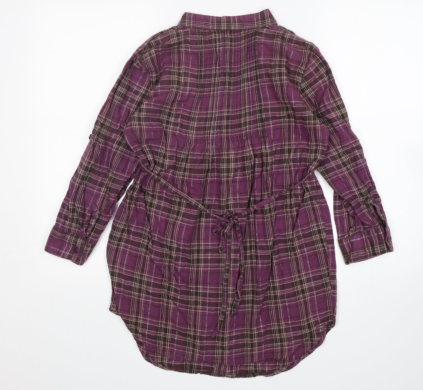 Womens Purple Plaid Cotton Basic Button-Up Size S V-Neck