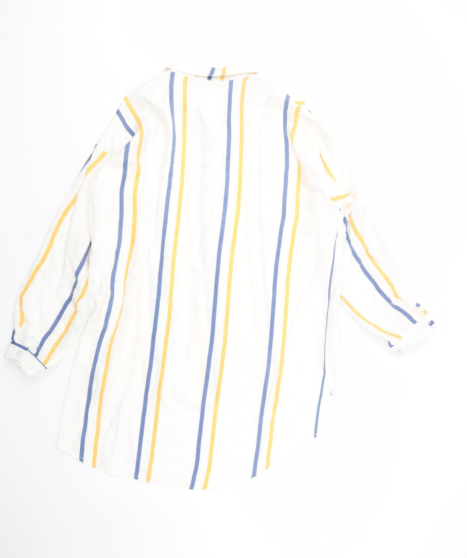 Womens White Striped Viscose Tunic Button-Up Size L Collared