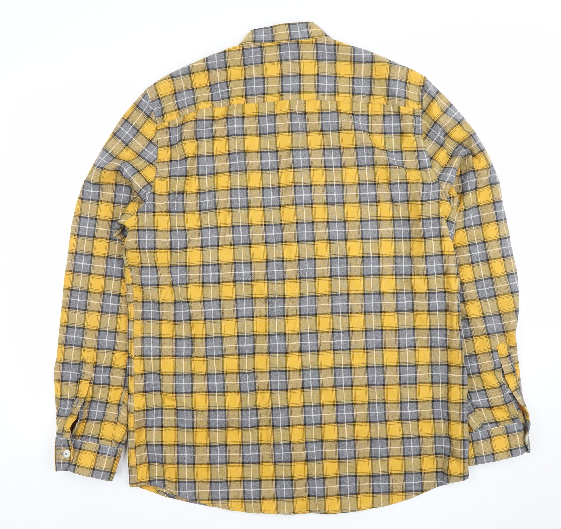 Men's Yellow Grey Check Long Sleeve Dress Shirt Size L