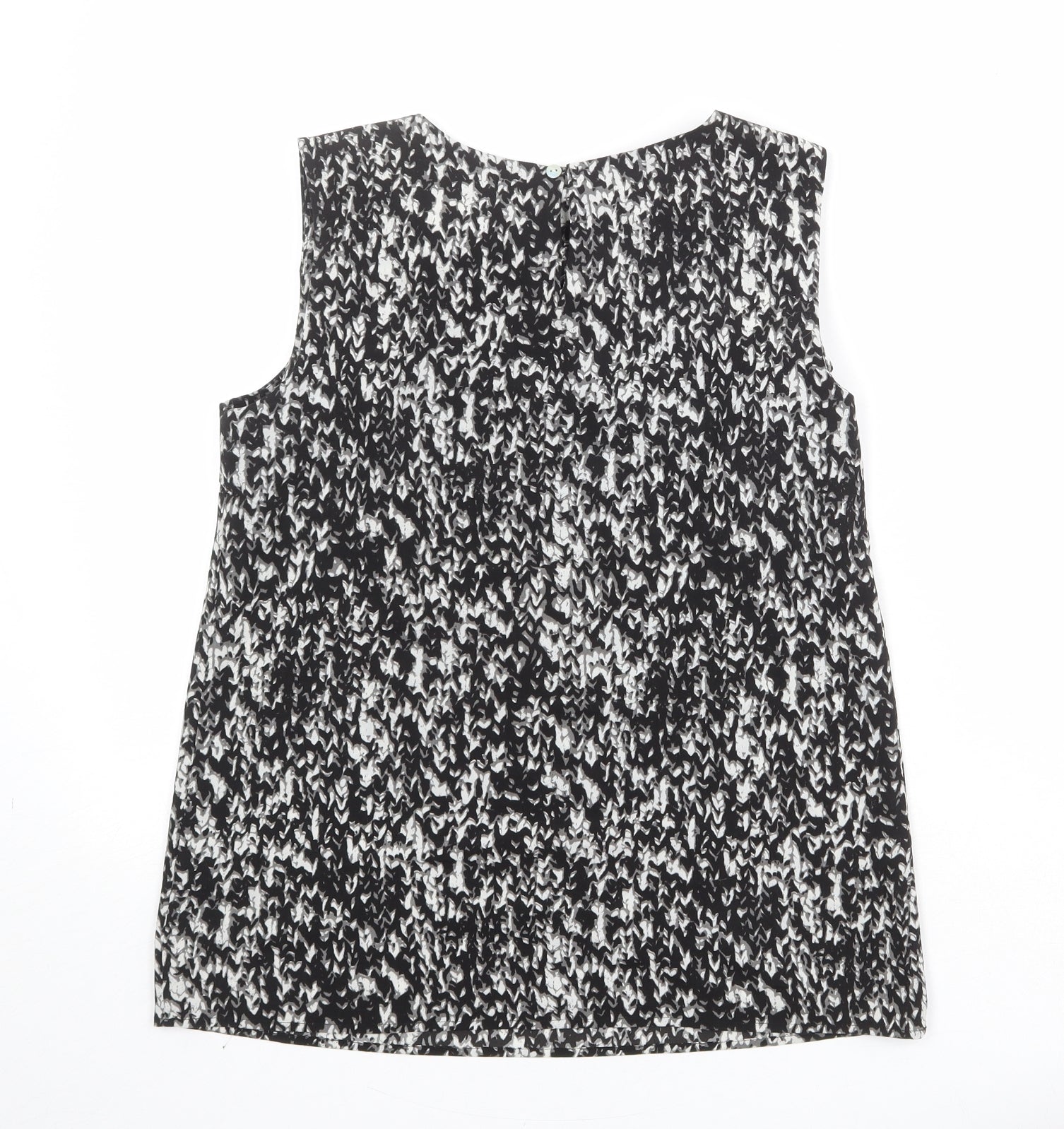 Womens Black Geometric Polyester Basic Blouse Size M Square Neck
