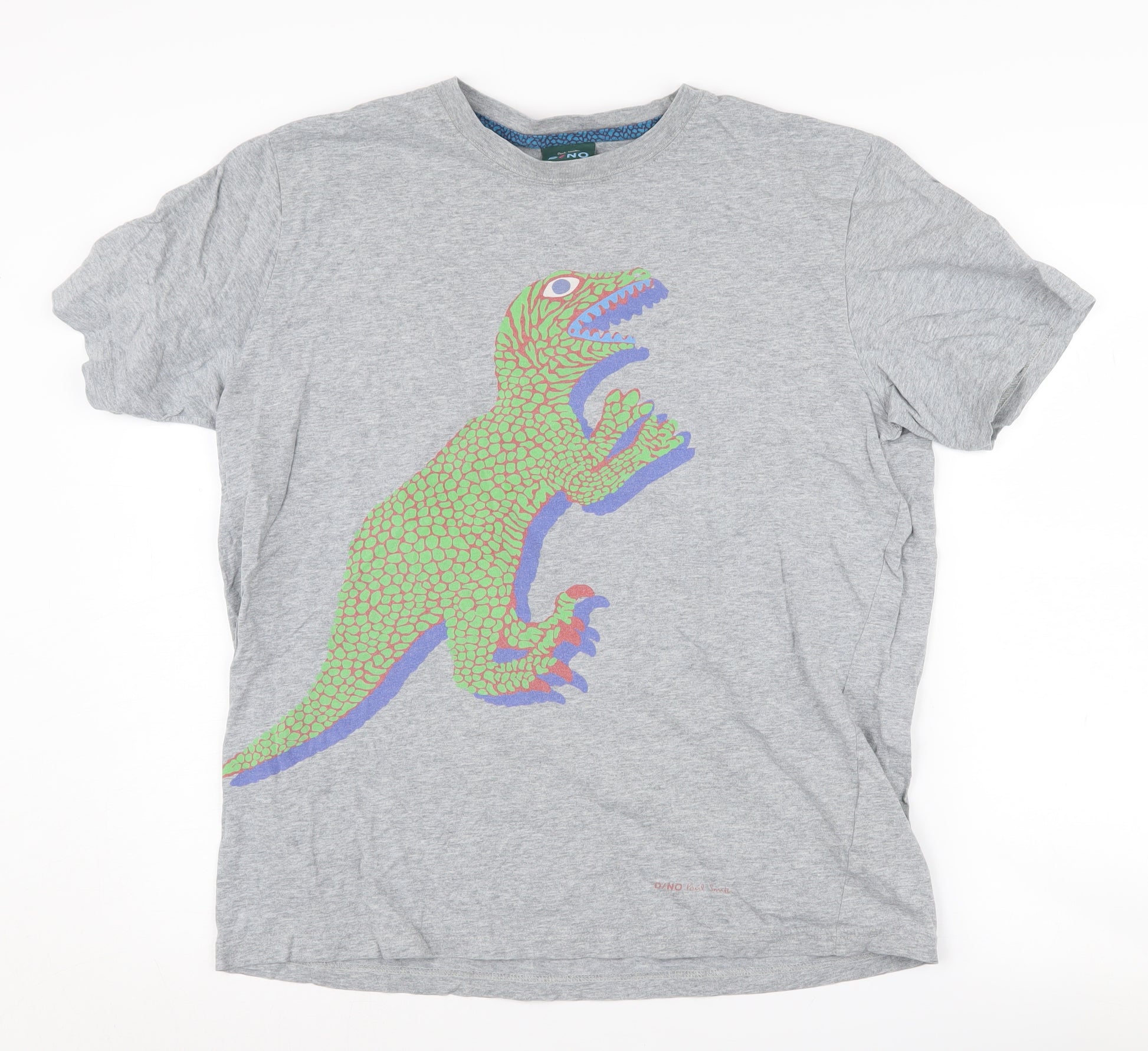Introducing a playful addition to your wardrobe, this Paul Smith Dino T-shirt is perfect for those who enjoy a hint of whimsy and style in their attire. Crafted from 100% organic cotton, the T-shirt offers unbeatable comfort and breathability, making it ideal for casual wear across all seasons. The regular fit coupled with short sleeves ensures ease of movement, while the grey fabric is adorned with a vibrant dinosaur graphic, injecting a fun element into your everyday look. It's designed with a classic crew neckline, seamlessly fitting into any relaxed outfit. Tailored for everyone, whether you're a teen, man, or prefer unisex styles, this versatile piece caters to a variety of wearers. Machine washable for your convenience, this T-shirt makes maintenance a breeze, keeping it fresh and ready for each outing. Despite being gently worn, it remains in excellent condition with no visible damage, offering the quality you expect from Paul Smith. Whether you're stepping out for a casual day with friends or lounging at home, this graphic print T-shirt is your go-to choice for combining comfort with a splash of character. Don't miss out on this unique piece that promises to add a bit of fun to your fashion rotation.