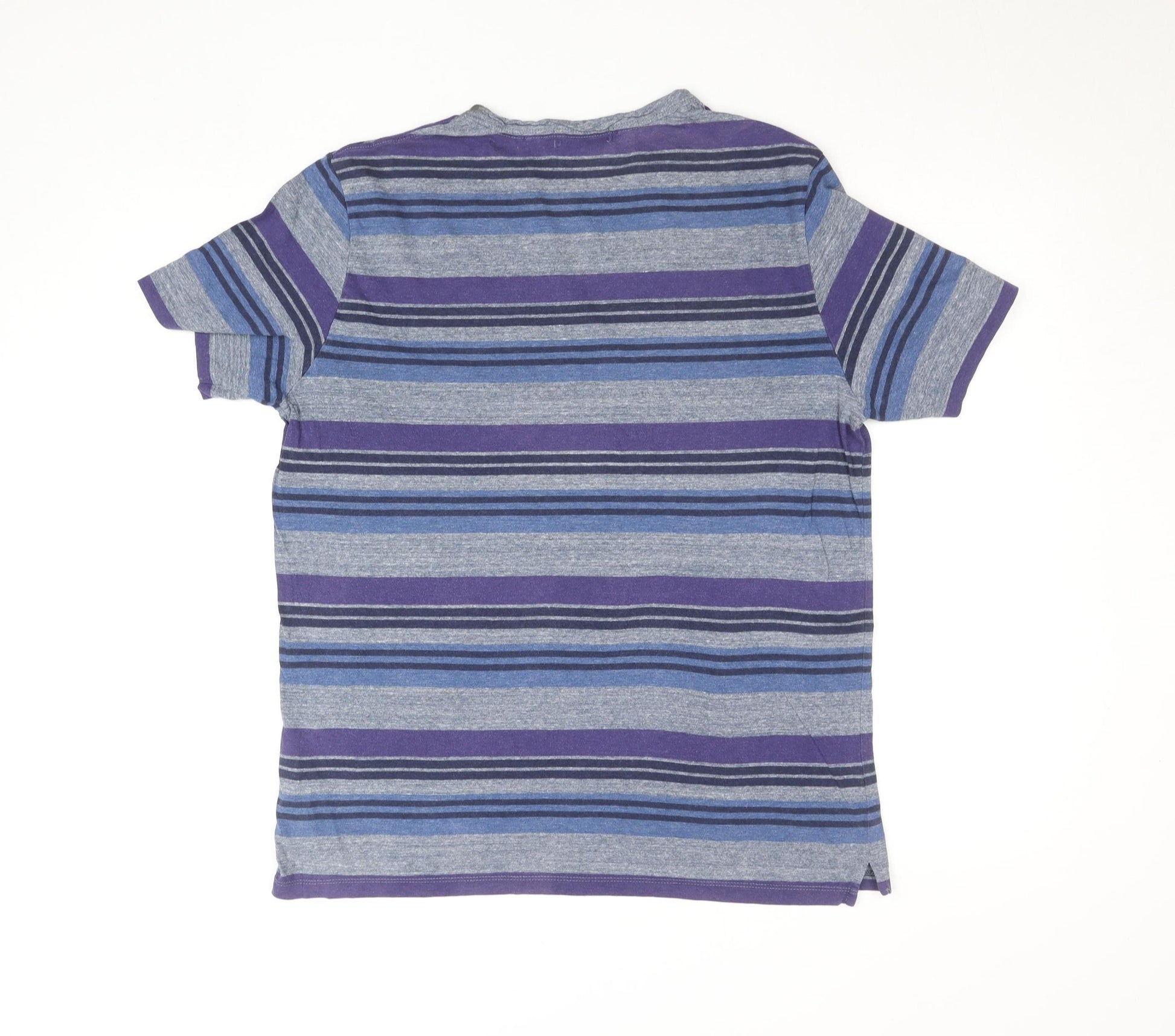 Jeans Men's Grey Blue Striped Crew Neck T-Shirt M