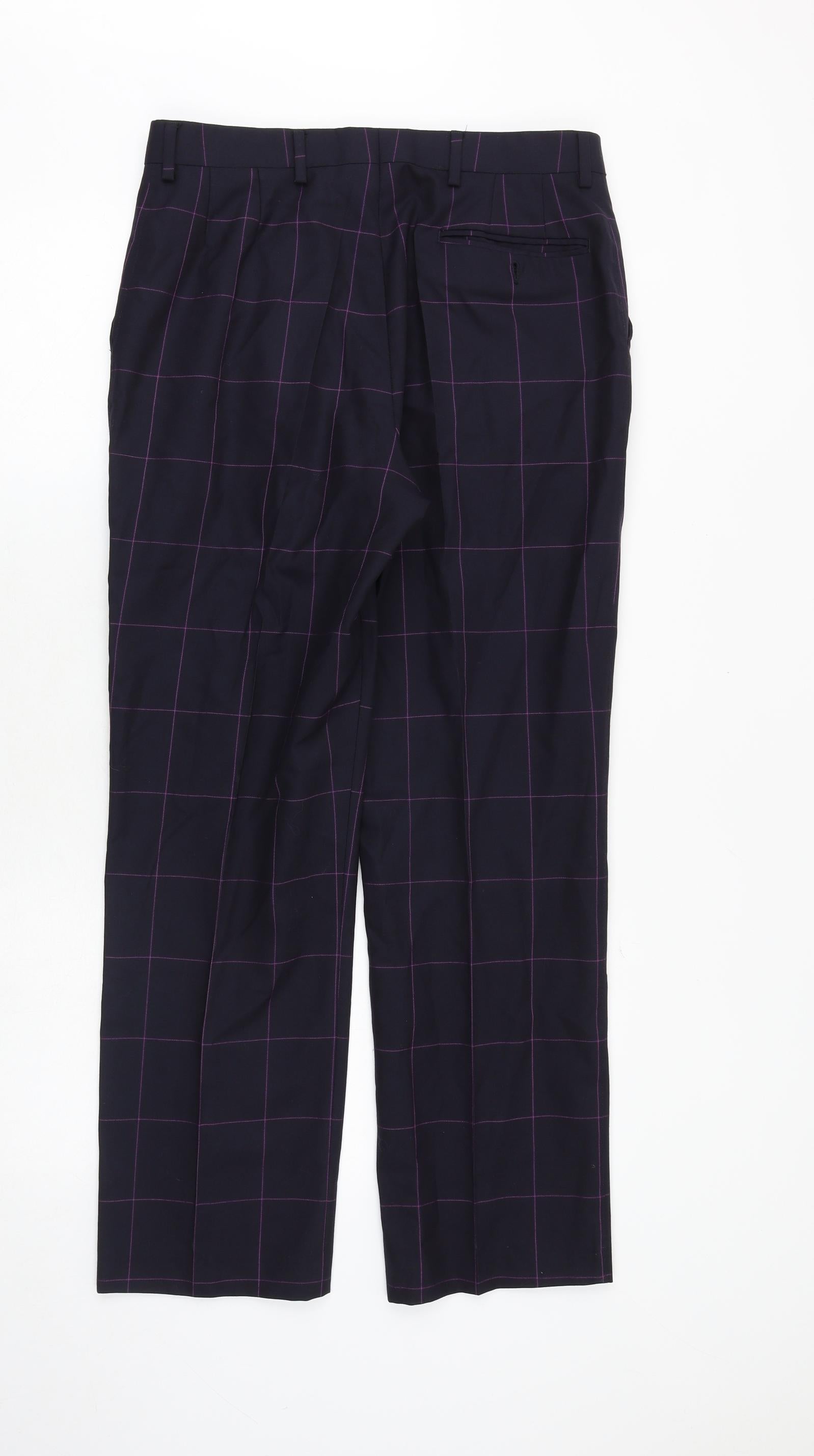 Mens Blue Check Polyester Trousers Size 32 in Regular Zip