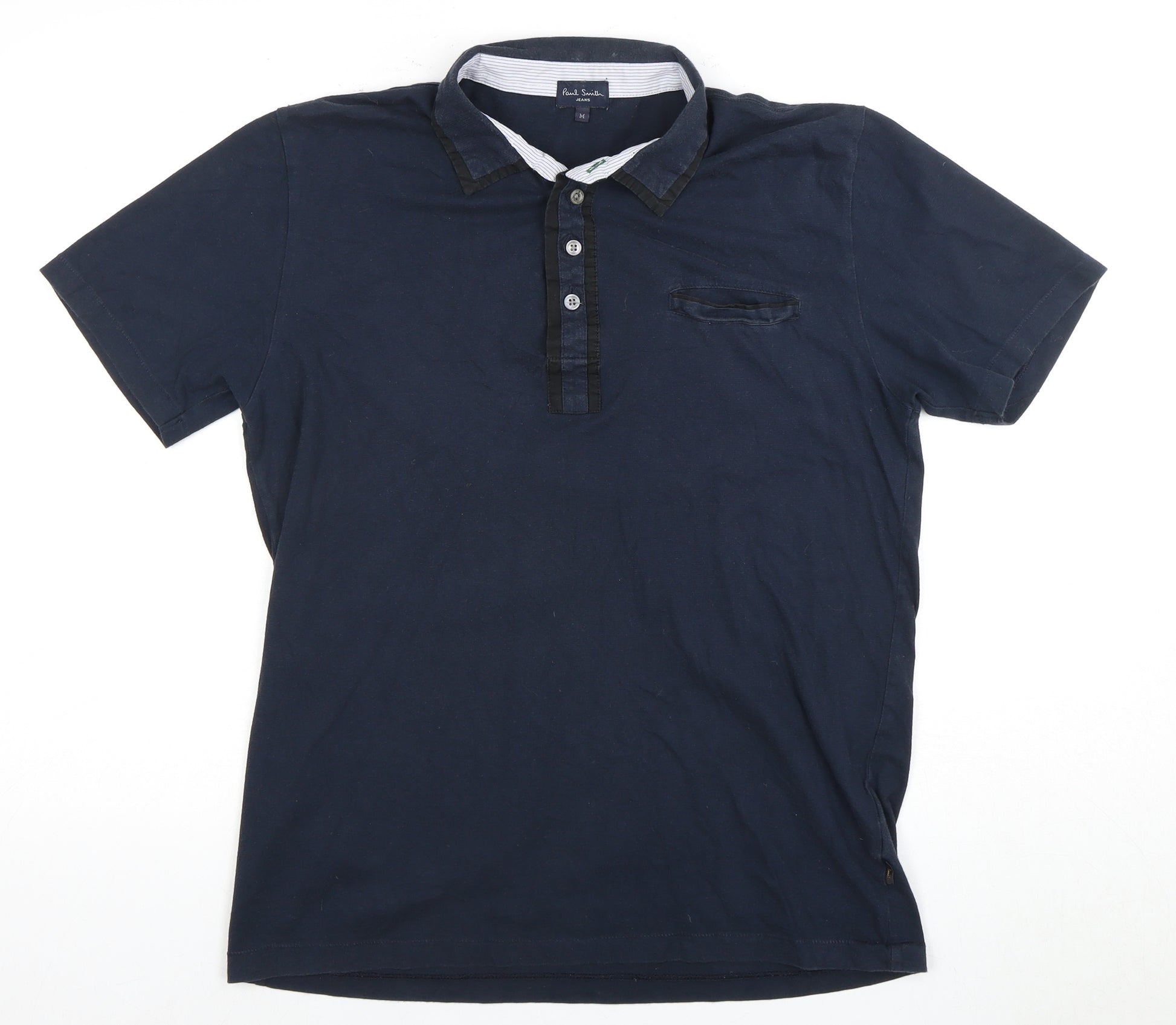 Elevate your casual wardrobe with this Paul Smith Men's Polo Shirt in a classic blue colour. Designed for comfort and style, this polo shirt is perfect for any casual occasion. Made from 100% cotton, it offers a soft jersey fabric that feels great against the skin and ensures breathability throughout the day. The shirt features a collared neckline with button accents, adding a touch of sophistication to the overall look. With short sleeves, this polo is ideal for warmer weather and provides a relaxed fit that complements a range of body types. The solid pattern and regular size type make it a versatile addition to your closet, easily paired with jeans or chinos for a smart-casual ensemble. Although this item doesn't come with its original tags, it is in excellent condition, offering great value and style. Machine washable for easy care, this Paul Smith Polo Shirt is a must-have for those who appreciate quality and timeless fashion. Whether you're heading to a casual lunch or enjoying a day out, this shirt promises to keep you looking effortlessly stylish.