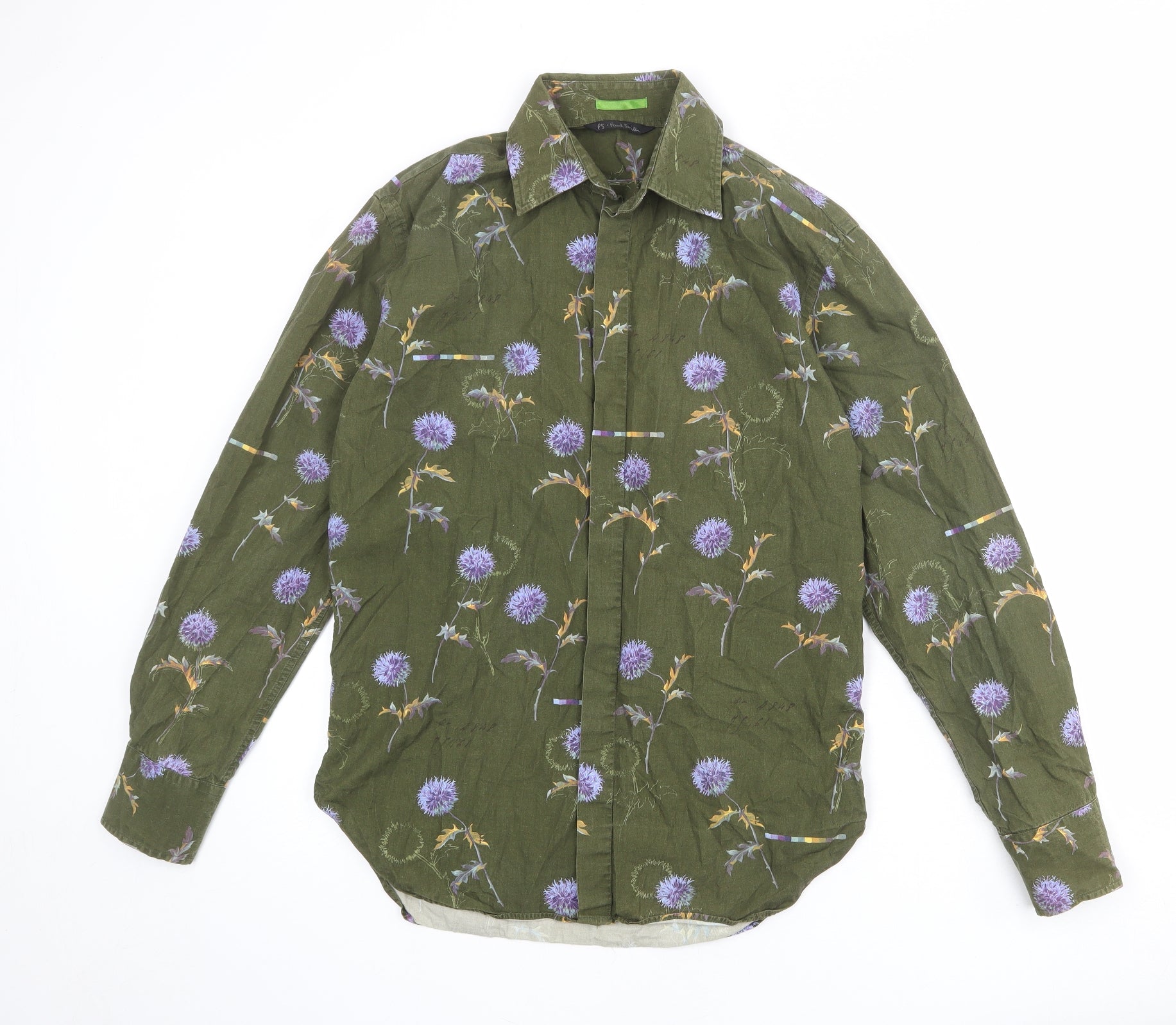 Mens Green Geometric Cotton Button-Up Size M Collared Button - Thistle pattern