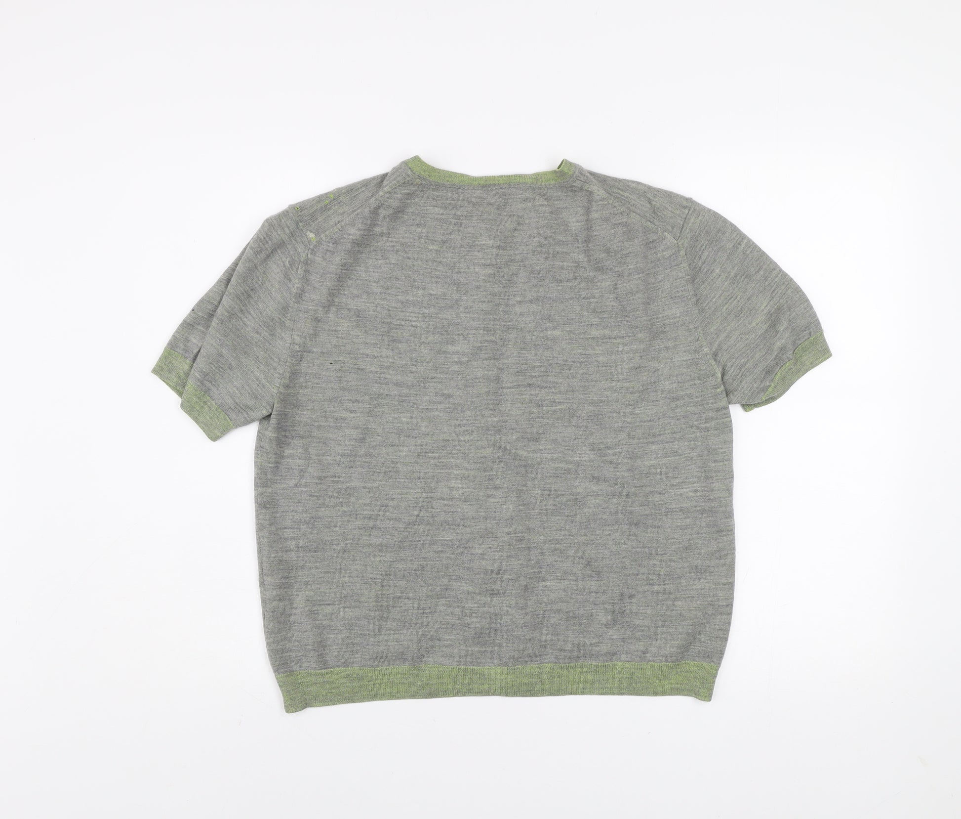 Women Grey Wool Viscose Short Sleeve Cardigan L