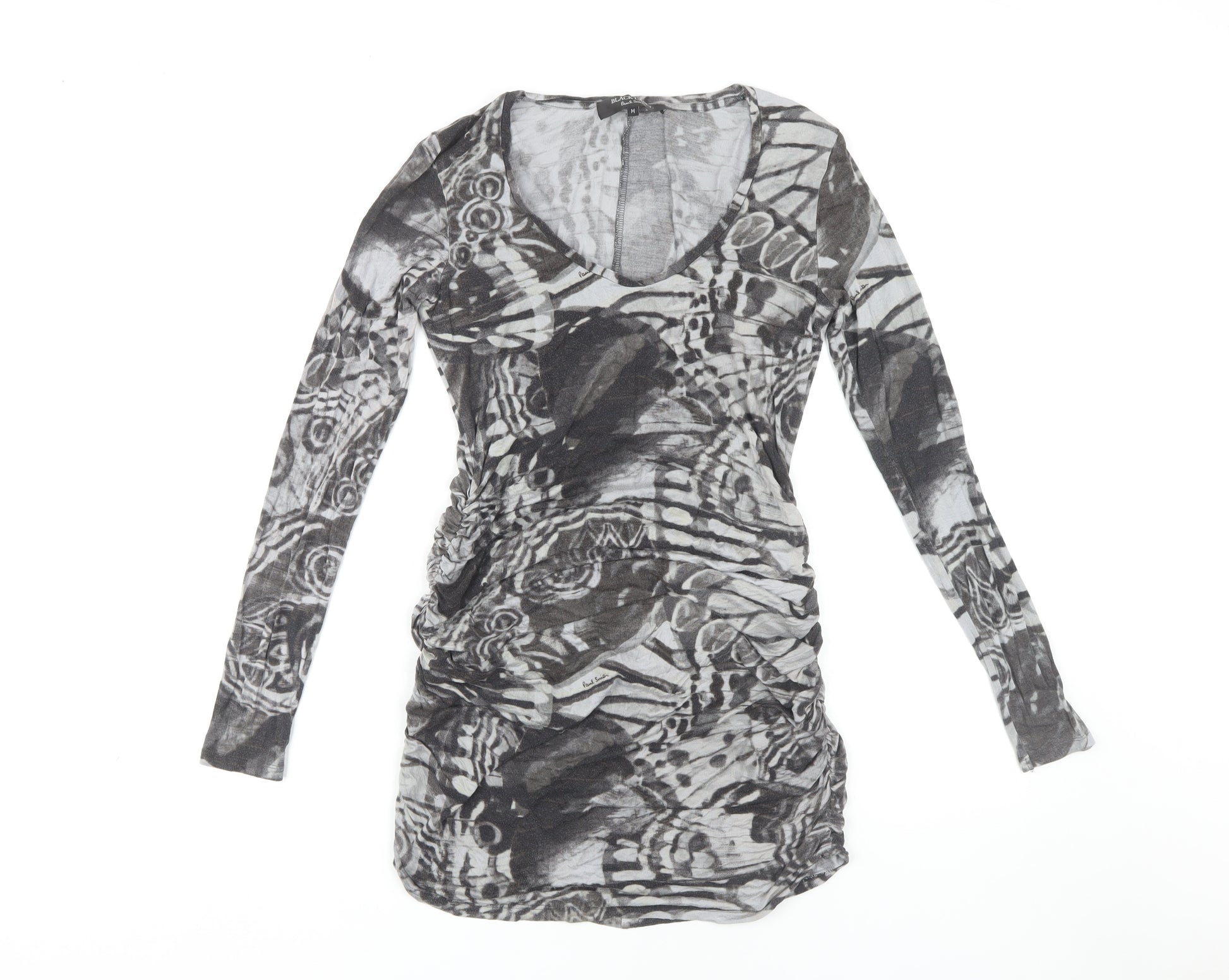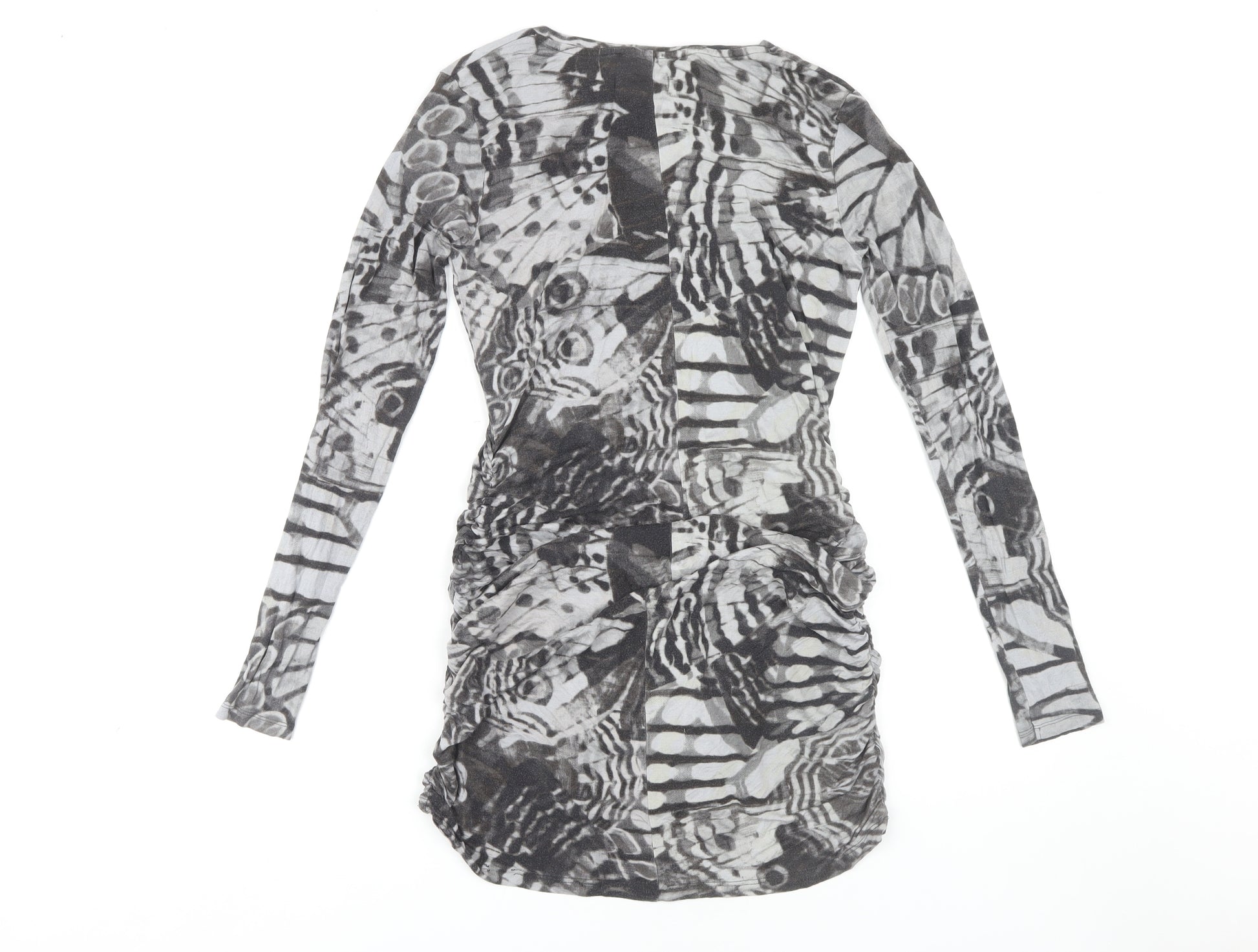 Presenting an exquisite piece from the celebrated Paul Smith Black Label, this women's bodycon dress perfectly fuses elegance with a modern edge. Crafted for those who appreciate unique style, it features a captivating multicoloured geometric pattern that sets it apart, ensuring you make a statement wherever you go. Designed in a flattering bodycon style, this dress accentuates your silhouette, while its long sleeves and V-neckline offer a classically elegant appearance. The use of high-quality jersey fabric ensures comfort without compromising on style. This delightful dress is made from a luxurious blend of viscose and elastane, promising both flexibility and a comfortable fit. With its sophisticated ruched feature, it adds a touch of intricate styling, perfect for a range of occasions. Whether you're heading to an evening event or a casual night out, this versatile dress adapts effortlessly to any setting. Despite its pre-loved status, it remains in excellent condition, showing no signs of wear. An ideal addition to any fashion-forward woman's wardrobe, this dress offers the chance to enjoy Paul Smith's renowned design at an accessible price. Elevate your collection with this stylish piece that speaks volumes of both elegance and modern chic.