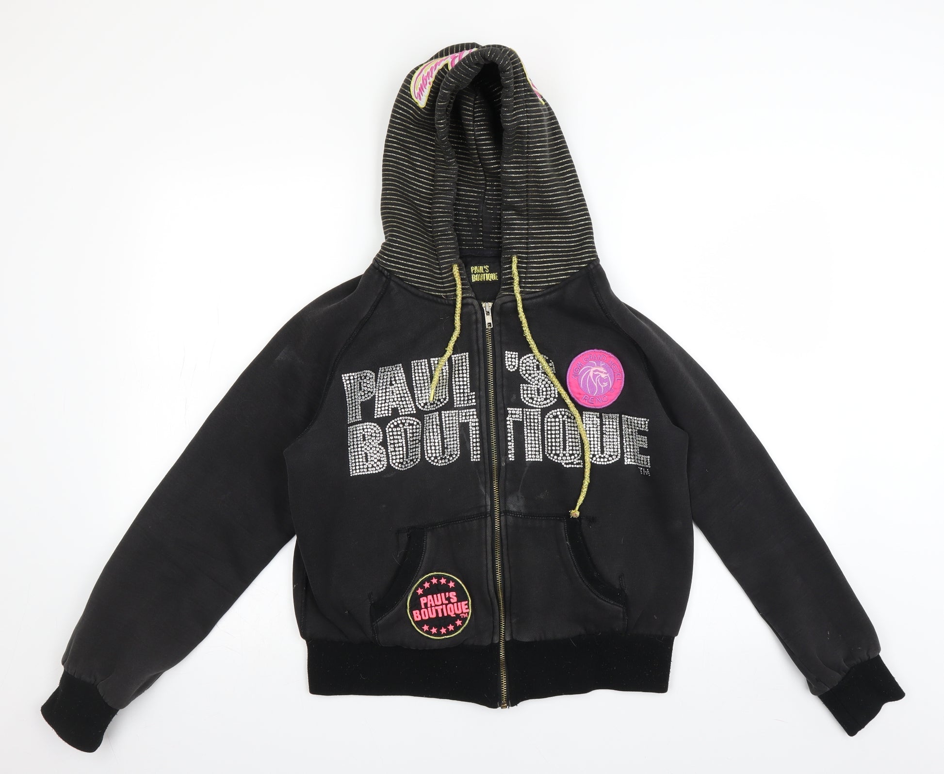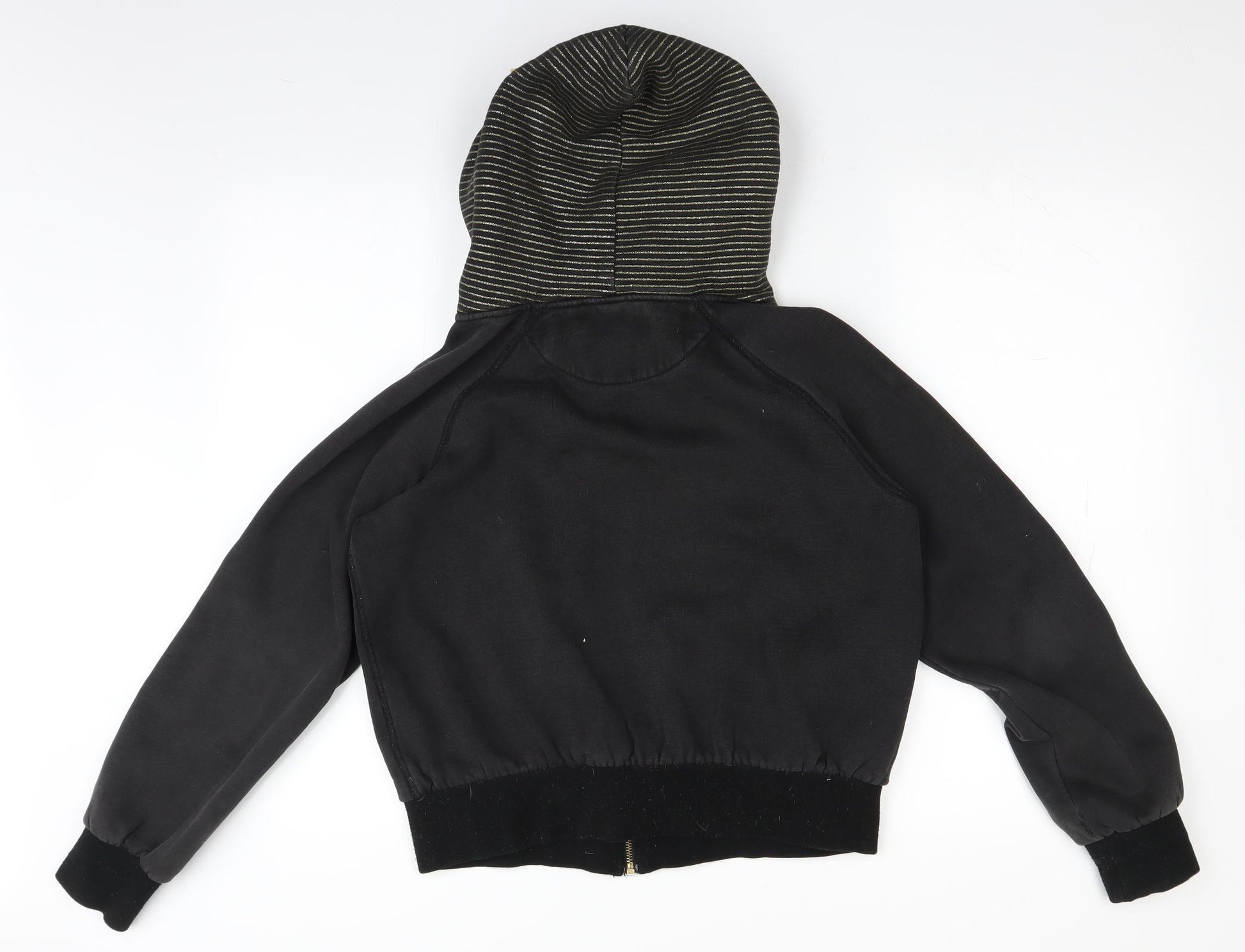 Womens Black Full Zip Hoodie Size L - gold accents
