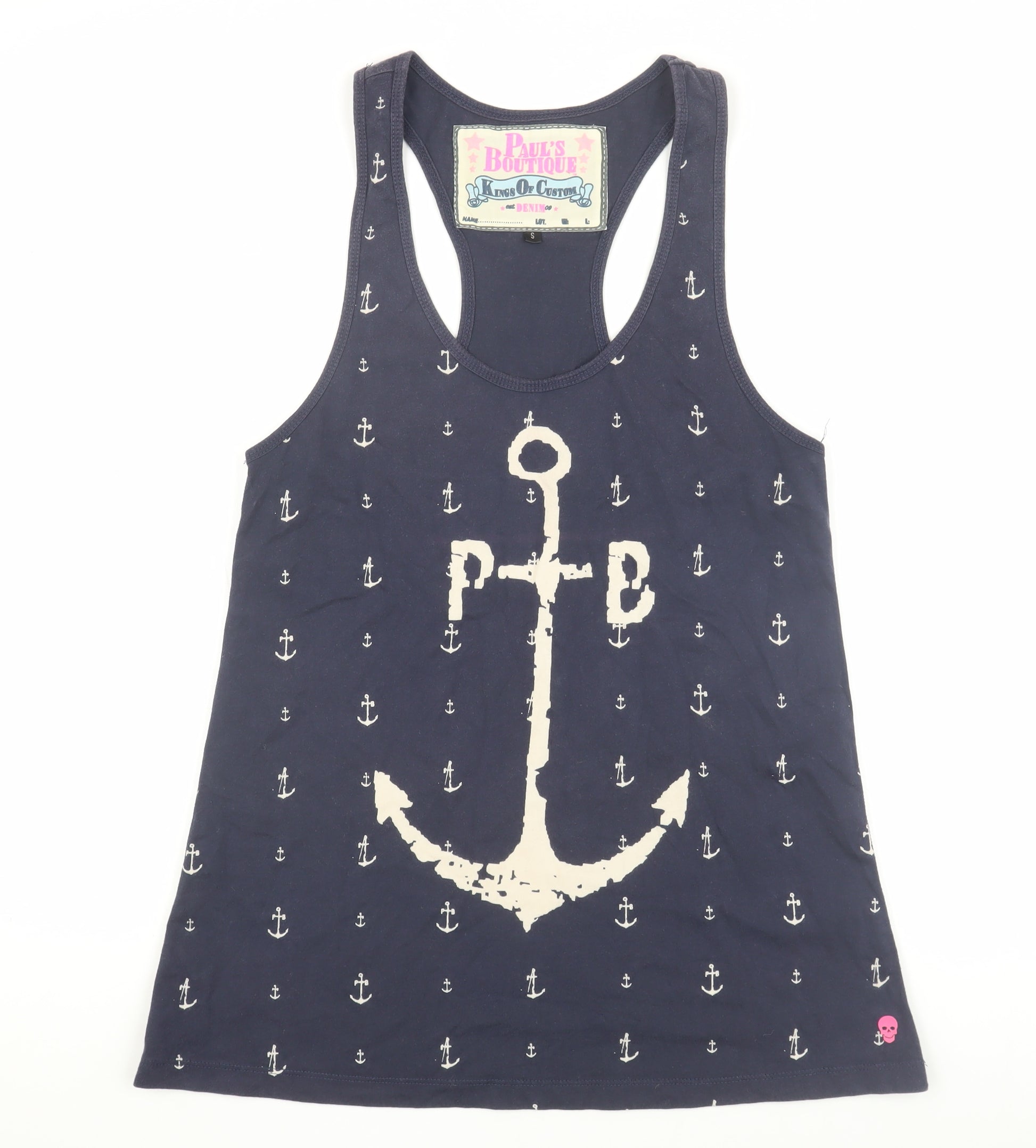 Dive into nautical charm with this fetching blue tank top by Paul's Boutique. Crafted from 100% cotton, this sleeveless piece offers unparalleled comfort and breathability, making it a go-to for casual outings. The standout feature is its stylish anchor pattern, providing a chic homage to maritime motifs. Designed for women seeking both comfort and style, this tank top in size S caters to a regular fit, exuding a relaxed yet fashionable vibe. Its versatile blue hue makes it an ideal match for a variety of wardrobes, whether you're heading to a café or strolling by the sea. Though previously owned, it remains in excellent condition, free from any noticeable wear. Versatile and easy to maintain, this top is a smart addition to any fashion-forward collection. Perfect for layering or wearing as is, it's a statement piece that promises to enhance your style instantly.