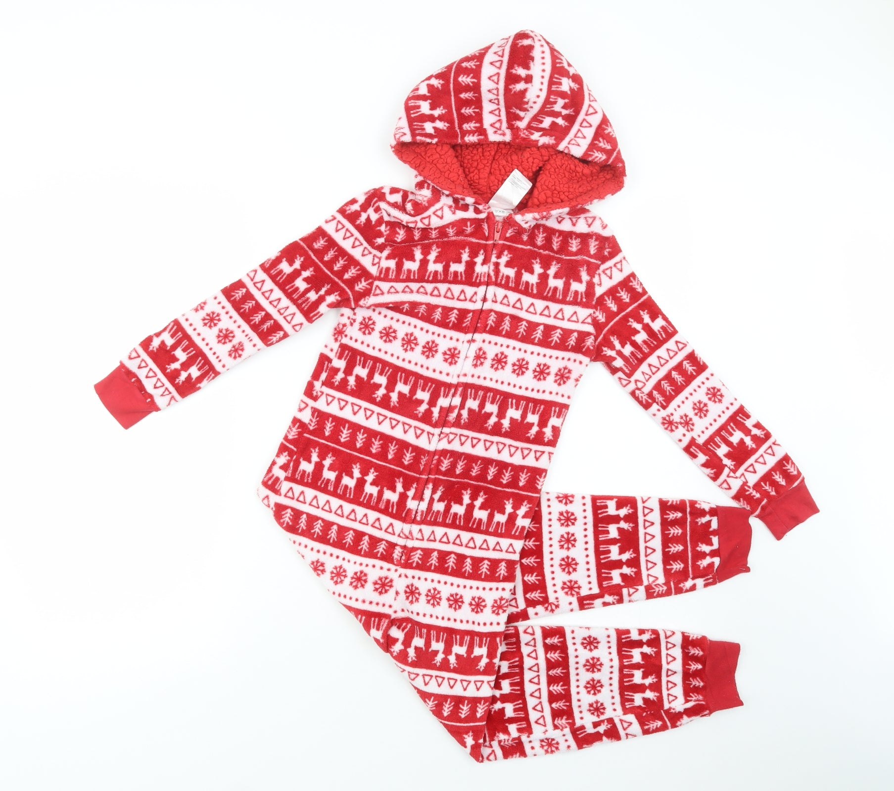 Girls Red Fair Isle Polyester Bodysuit Size 8-9 Years Zip - Onesie