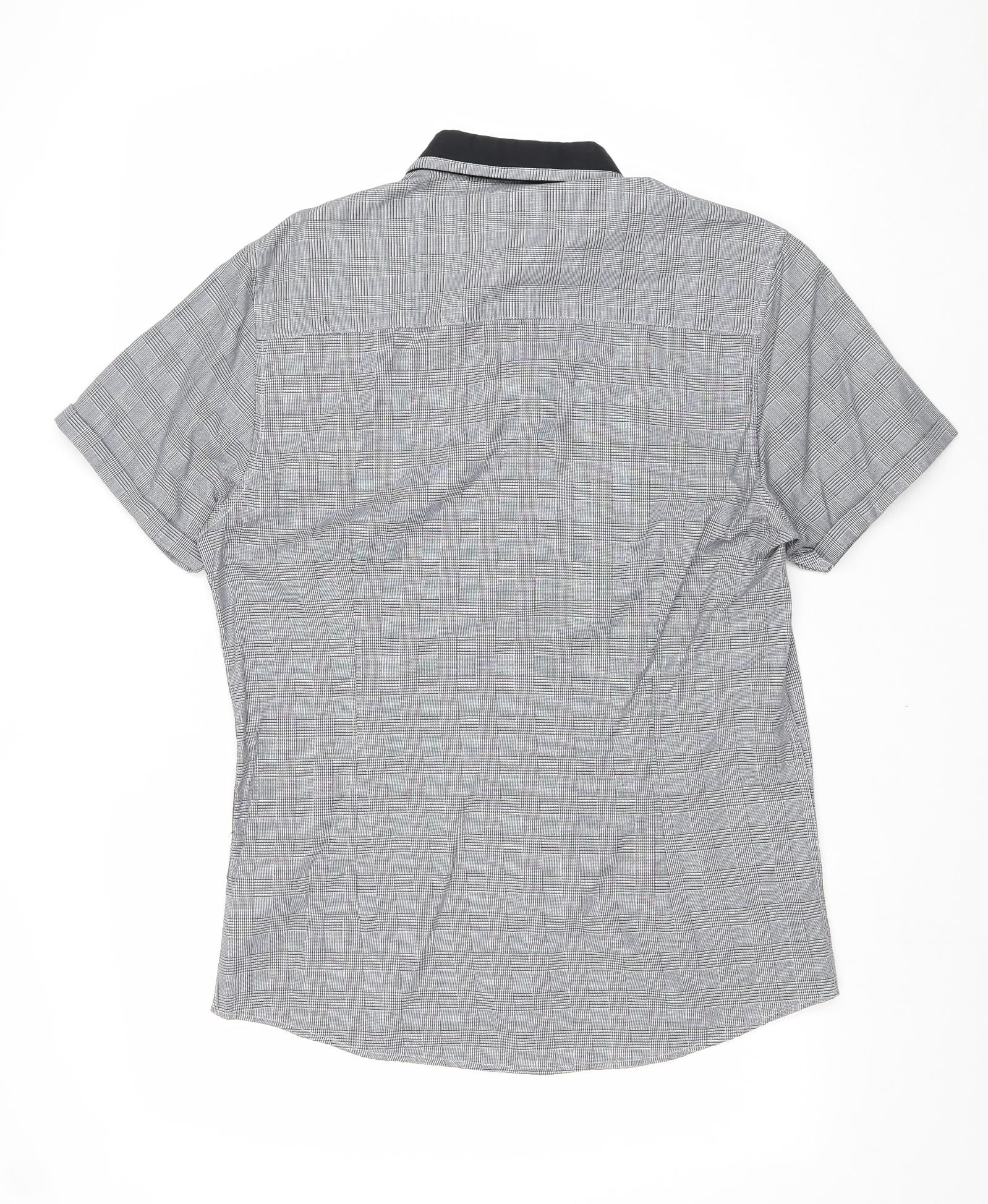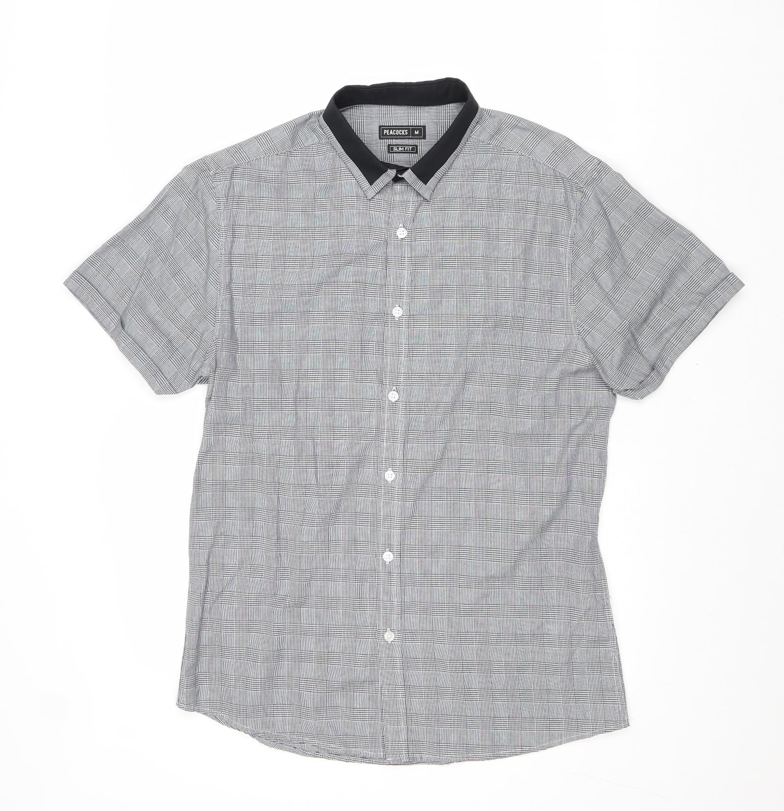 Mens Black Check Polyester Dress Shirt Size M Collared Button