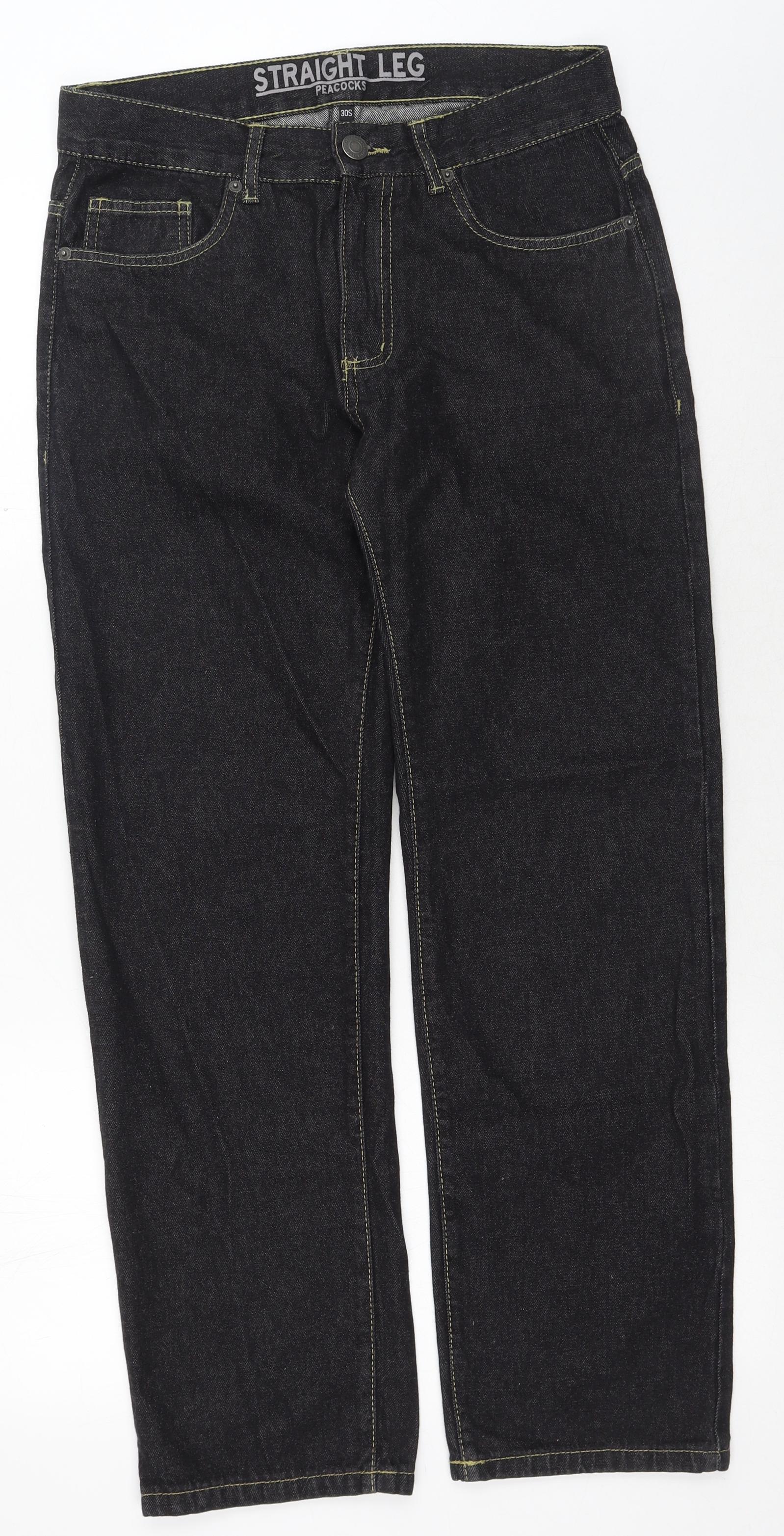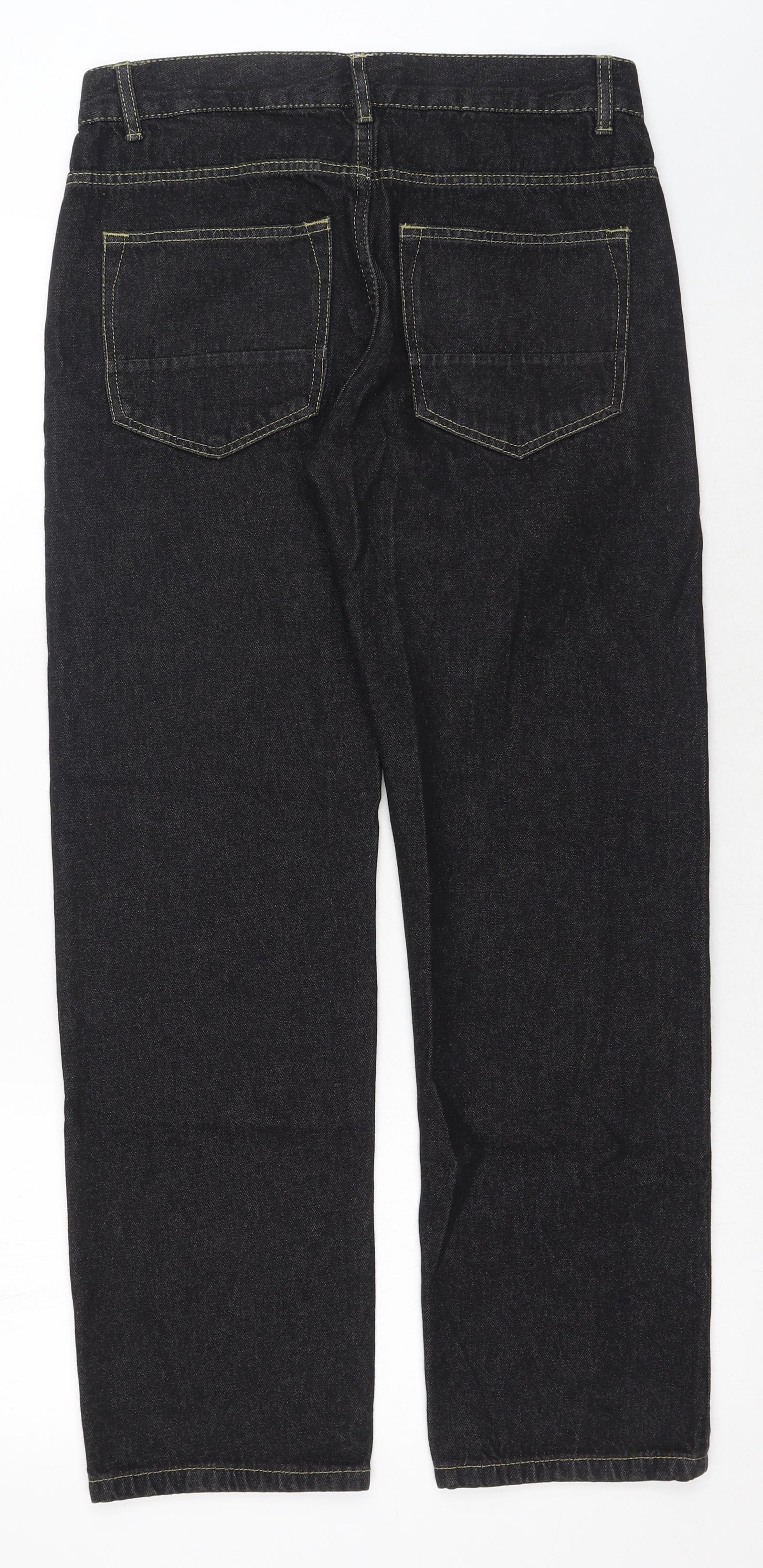 Mens Black Cotton Straight Jeans Size 30 in Regular Button