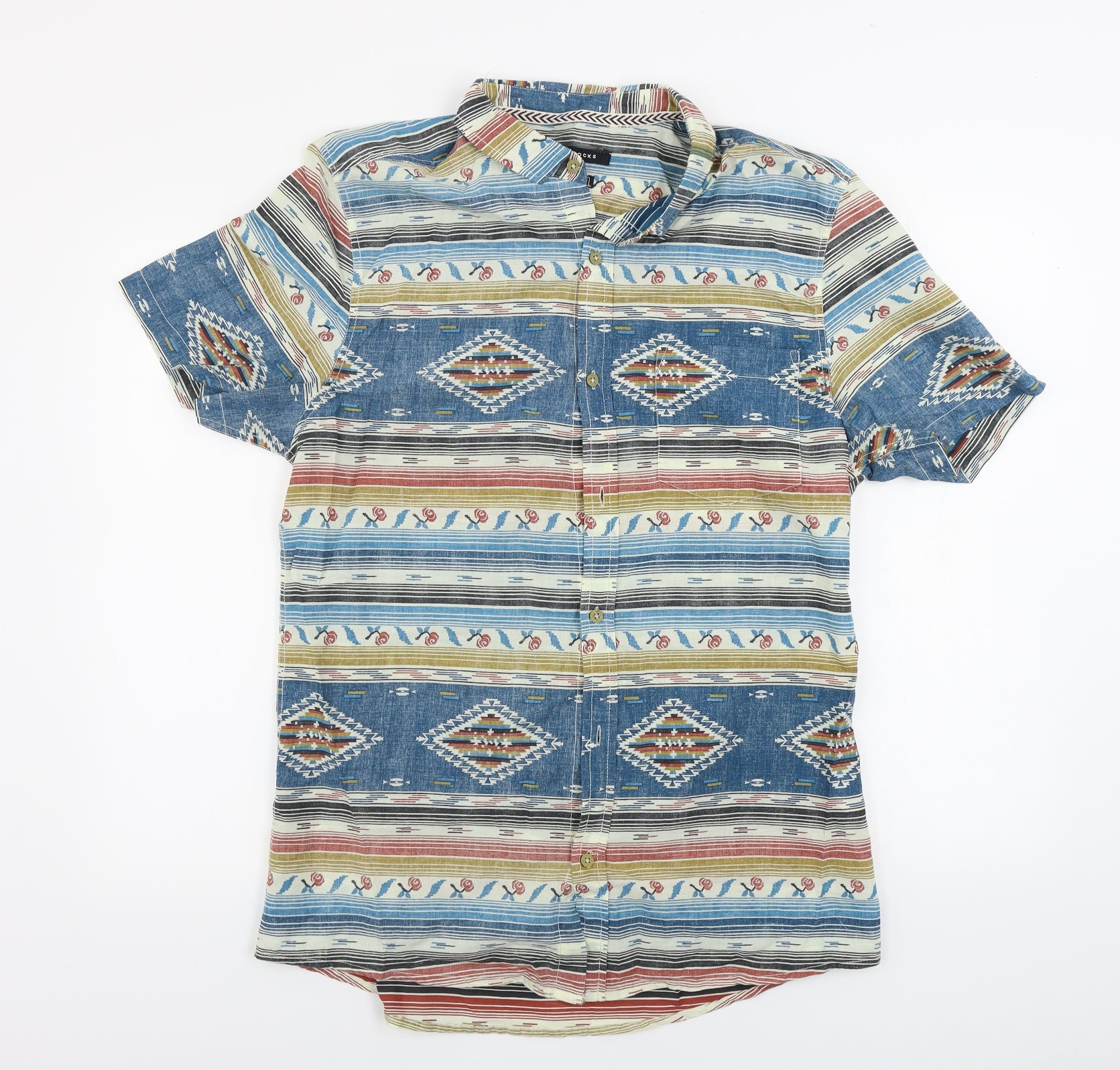 Regular price£18.50£1850Regular priceUnit price / perSale price £18.50 GBPEasy Mens Blue Geometric Cotton Button-Up Size L Round Neck Button