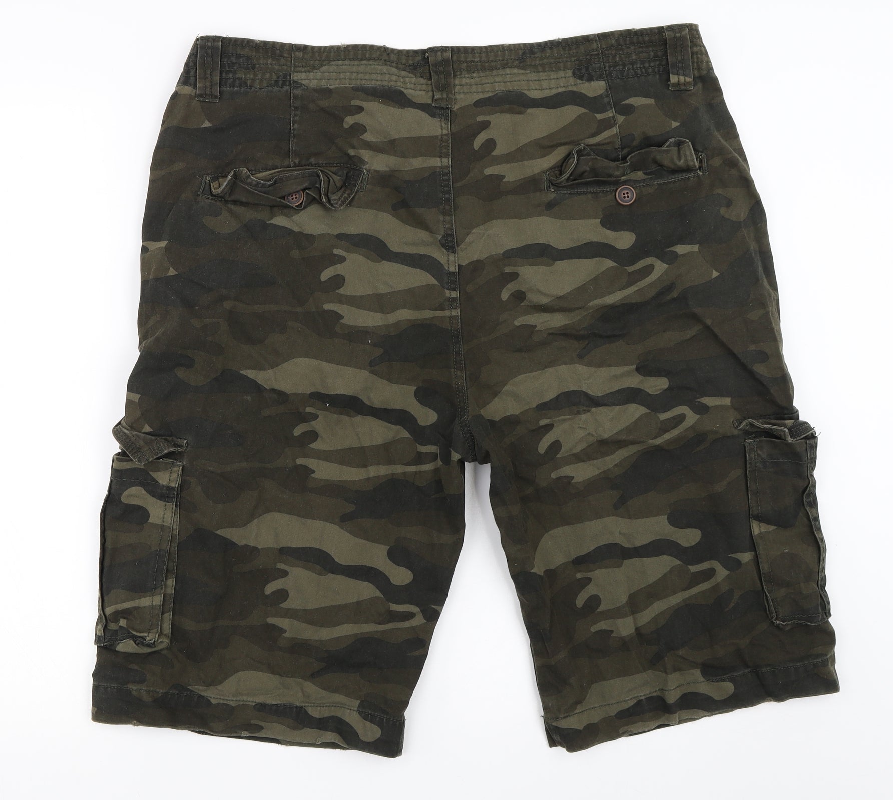 Mens Green Camouflage Cargo Shorts Size 38 in