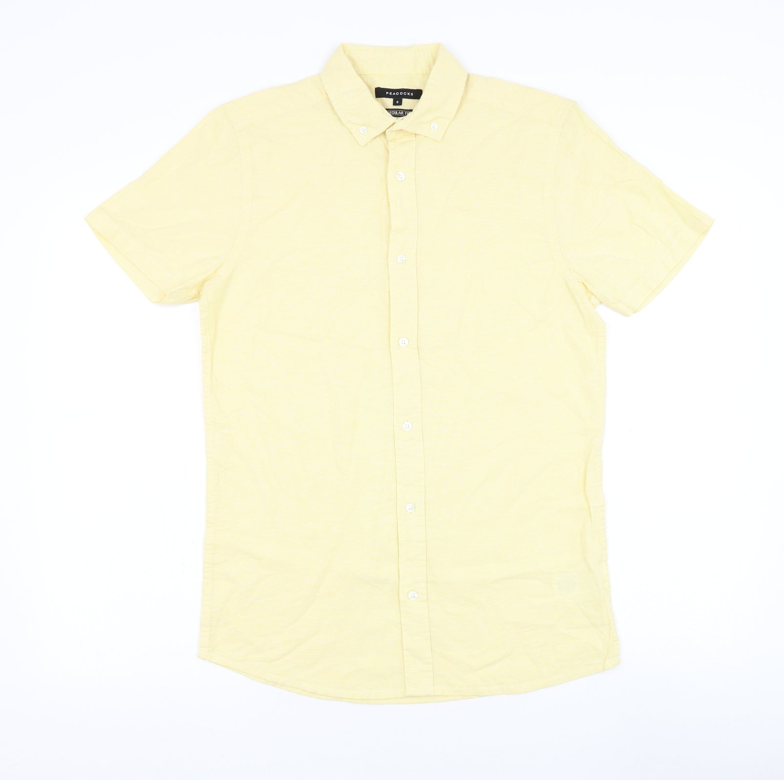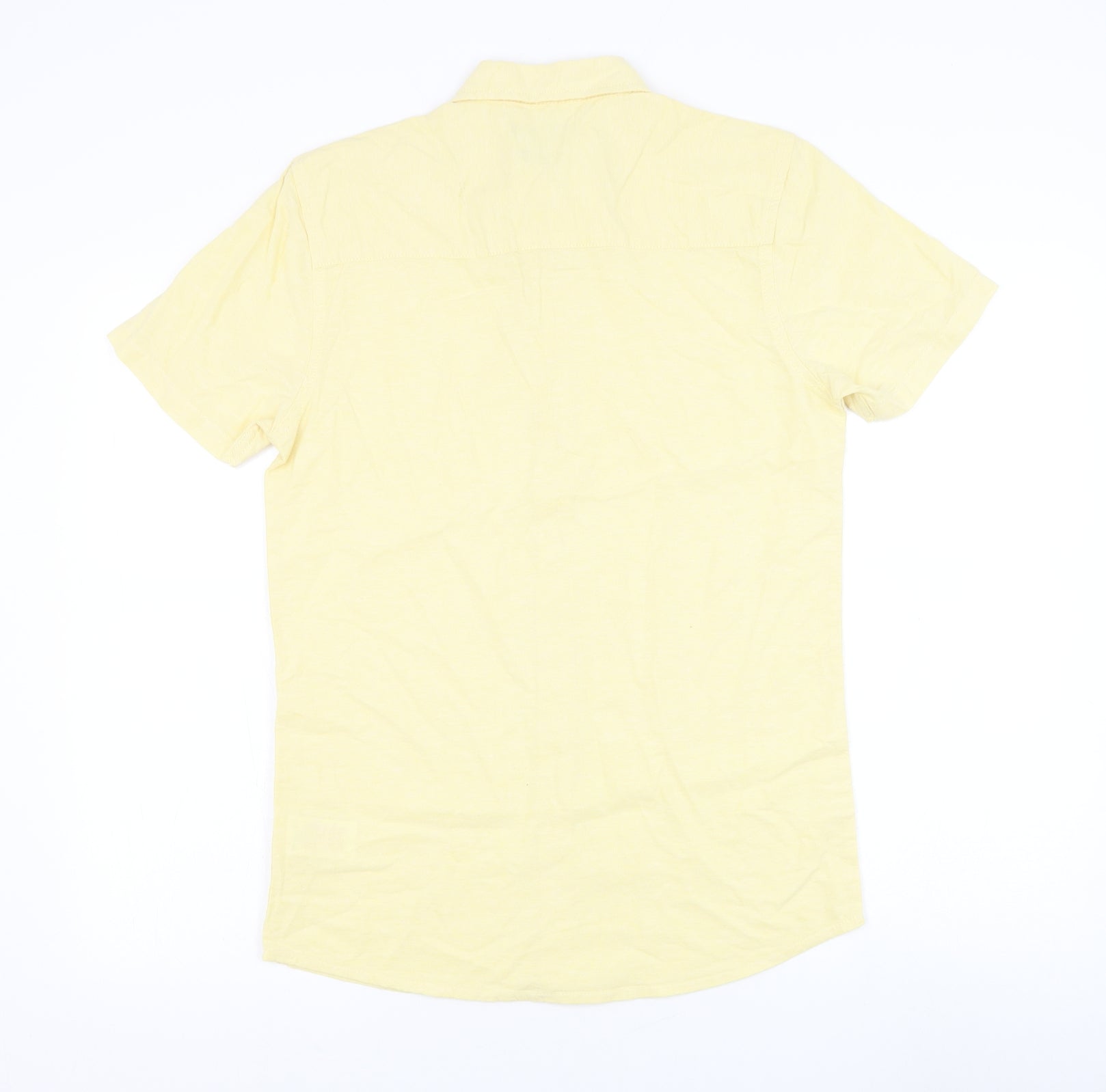 Mens Yellow Cotton Button-Up Size S Collared Button