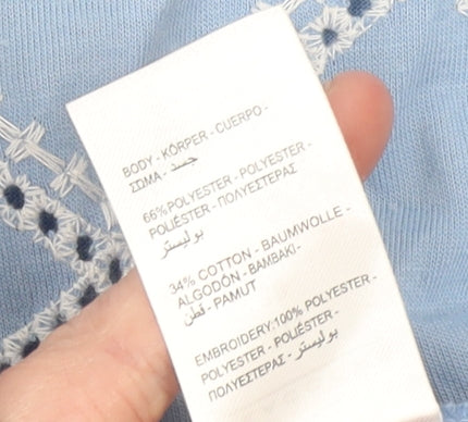 Women Blue Embroidered Geometric Short Sleeve T-Shirt UK 10