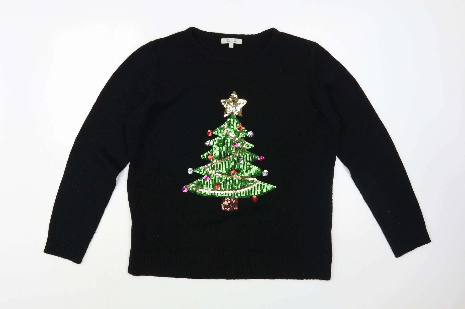 Womens Black Crew Neck Acrylic Pullover Jumper Size L - Christmas Jumper